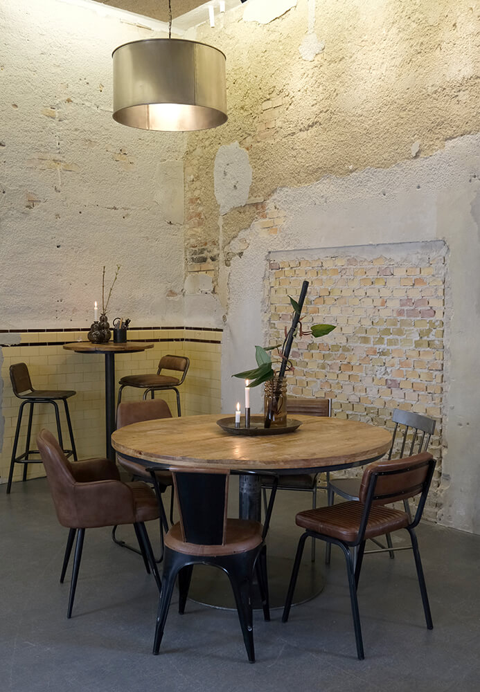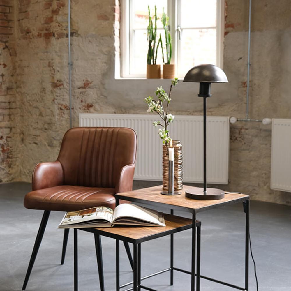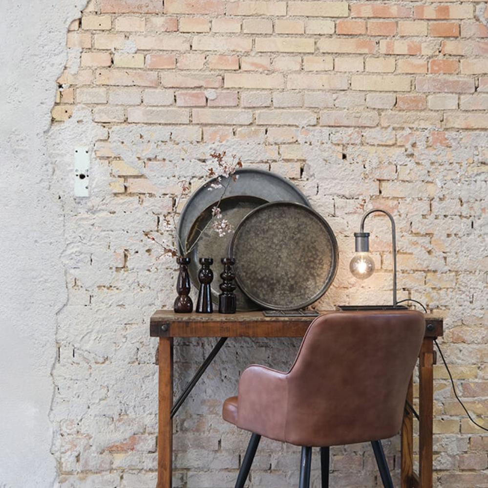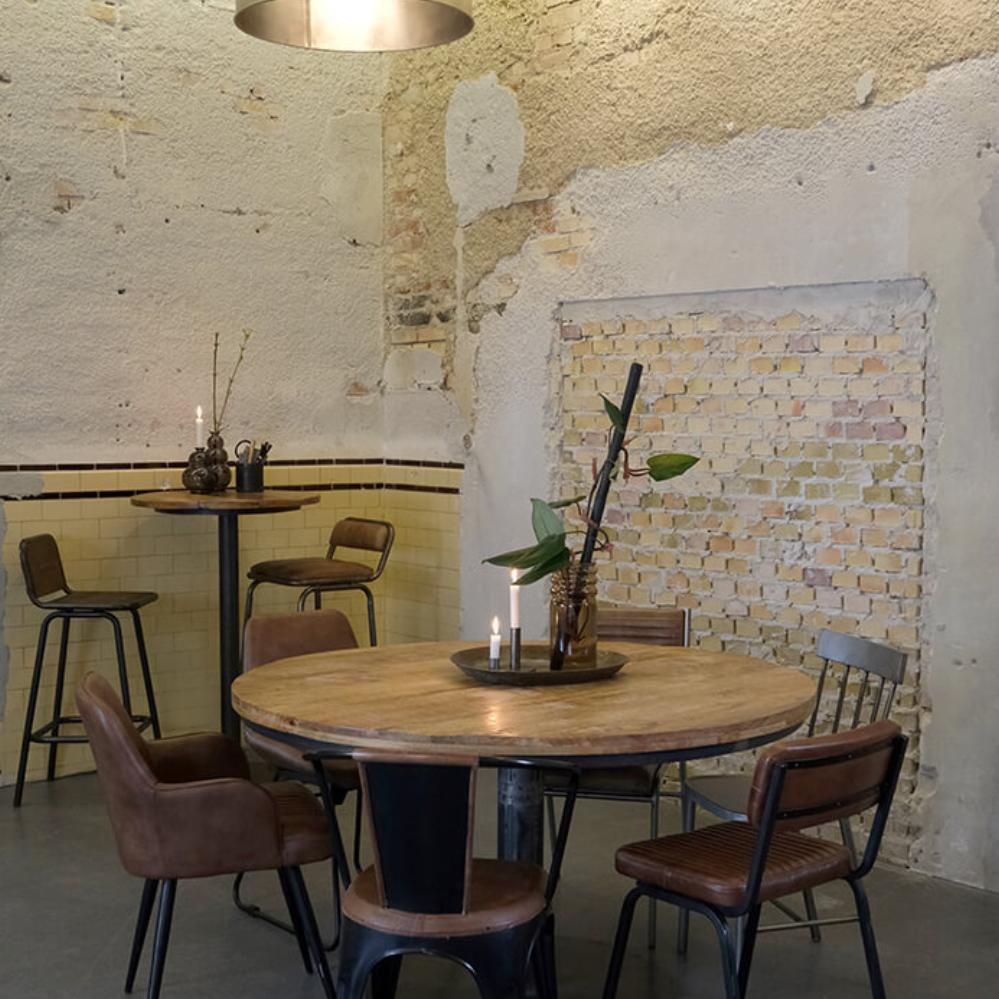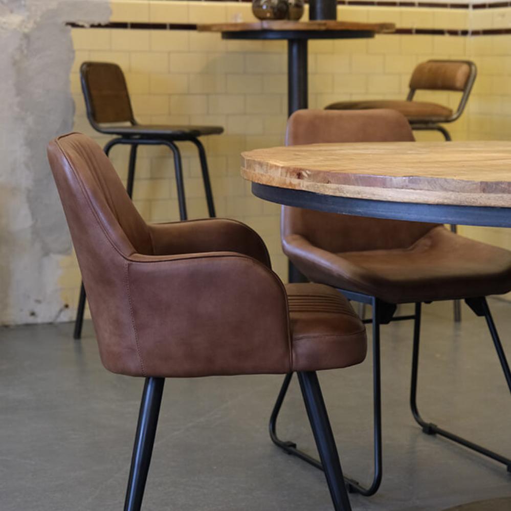 This dining chair in brown buffalo leather is the perfect choice for those seeking a raw and inviting seating option. The authentic buffalo leather upholstery adds a rustic and natural charm, making it an excellent fit for a masculine and relaxed interior. The sleek black metal legs provide a modern twist, while the decorative stitching on the backrest and seat adds a raw and detailed look. With its armrests and comfortable design, this dining chair is ideal for use in cafés, restaurants, or at home in the dining room.