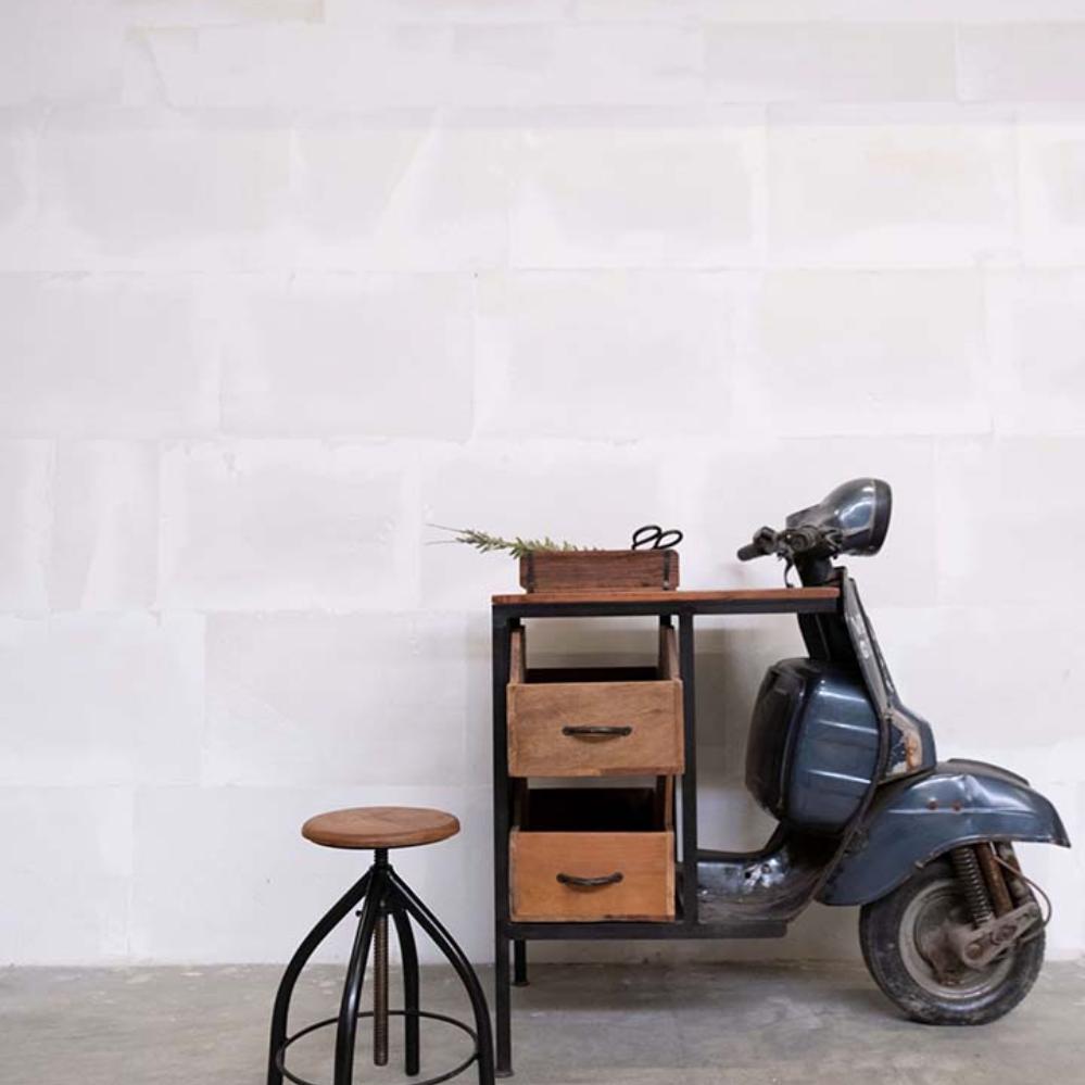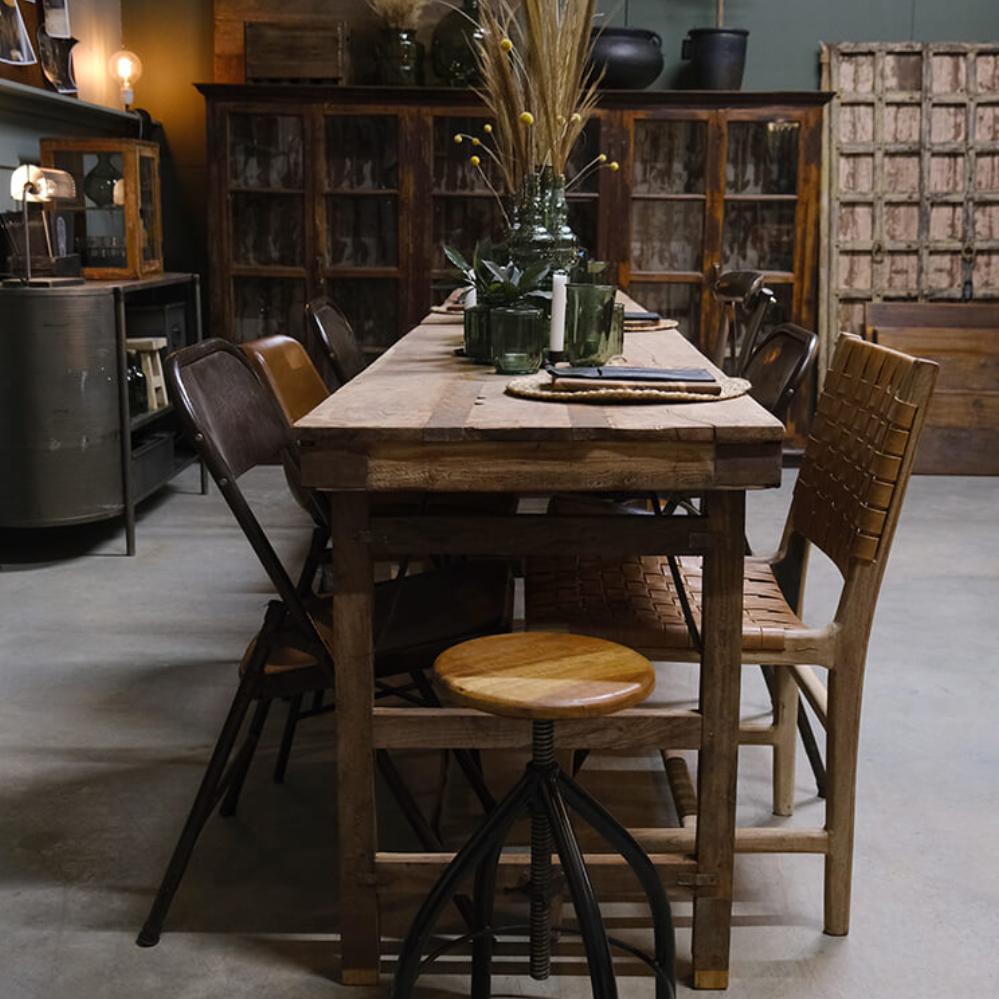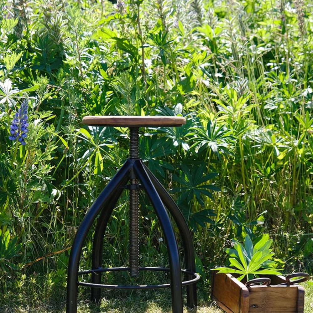 Stunning swivel stool in iron with a cool wooden seat made of reclaimed wood. The stool is height-adjustable and can be adjusted up or down depending on your desired height. It is therefore ideal for use by both adults and children, and in any room in your home or shop - anywhere you need an adjustable chair. It also makes a great side table for your coffee, a vase of fresh flowers or similar items in areas where space is limited. H: flexibility of max 62cm - min. 41cm