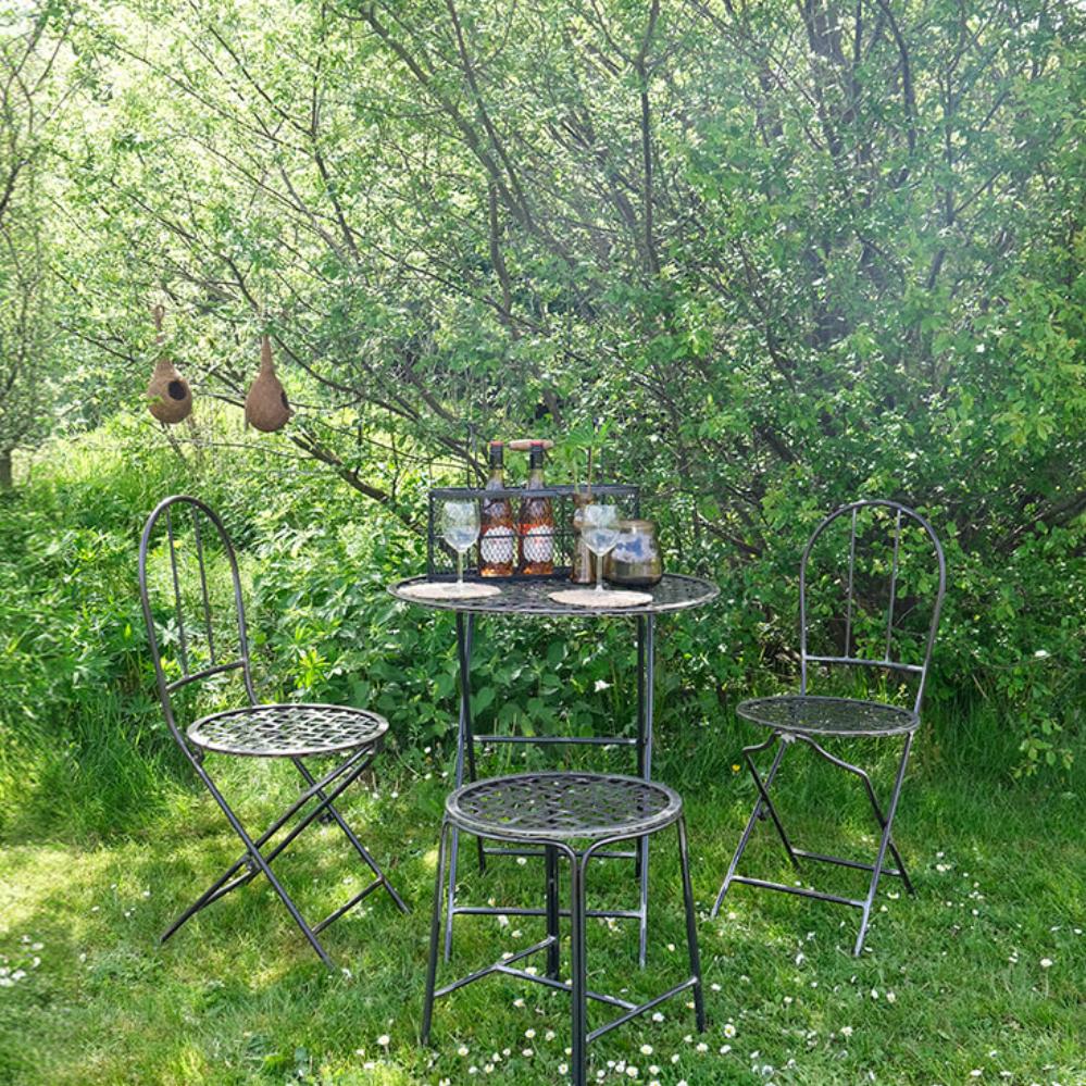 This classic French foldable chair with a braided iron seat, is our modern interpretation of the classic French bistro chair. This chair combines the raw and graceful in one harmonious design. Made of sturdy iron and equipped with a finely braided iron seat, it is a beautiful fusion of contrasts. Our French chair with a braided seat will add charm and character to any room. Infuse your decor with a touch of French bistro with this exceptional chair, where raw and relaxed unite in the most delightful way.