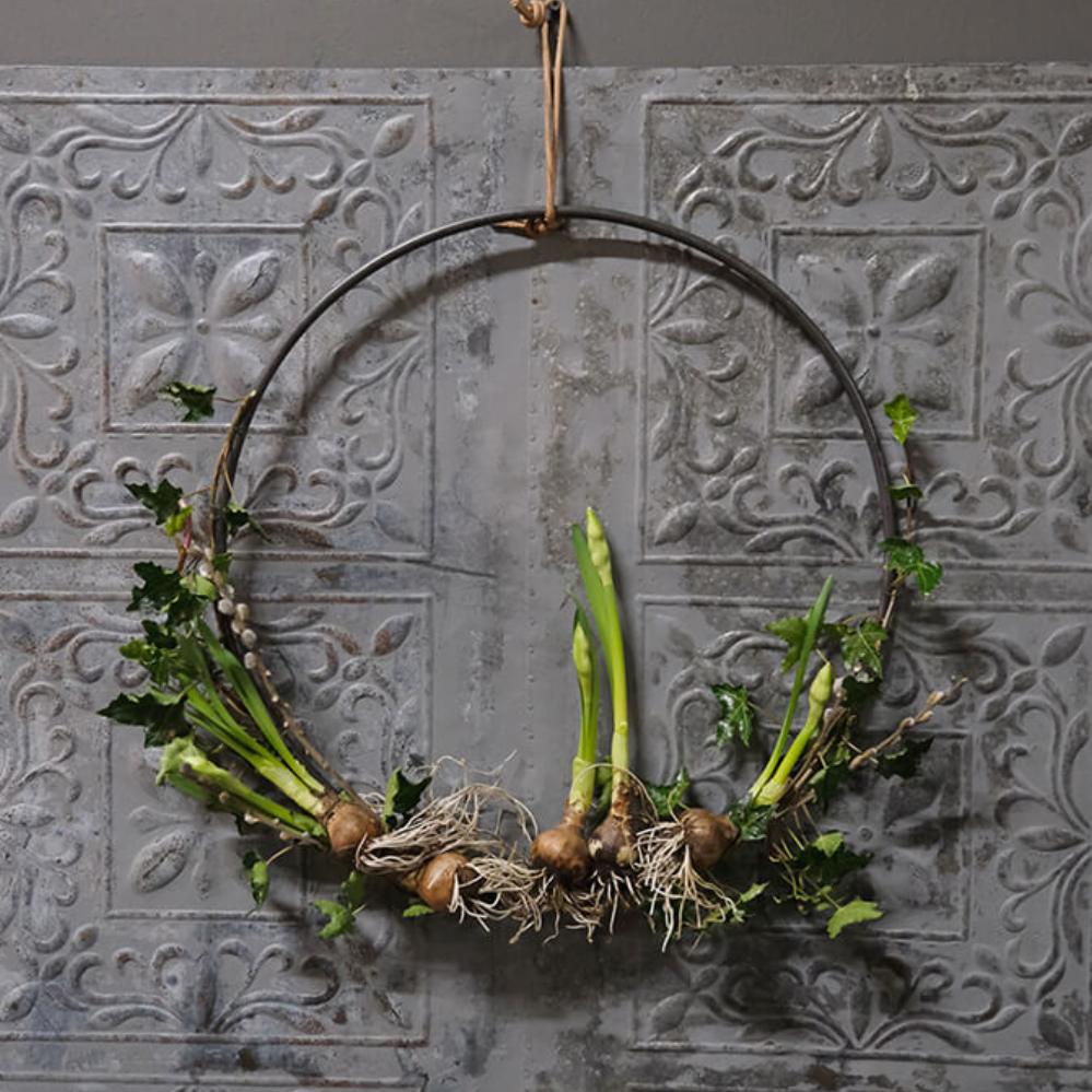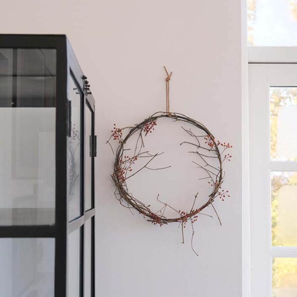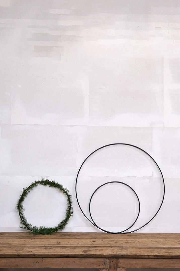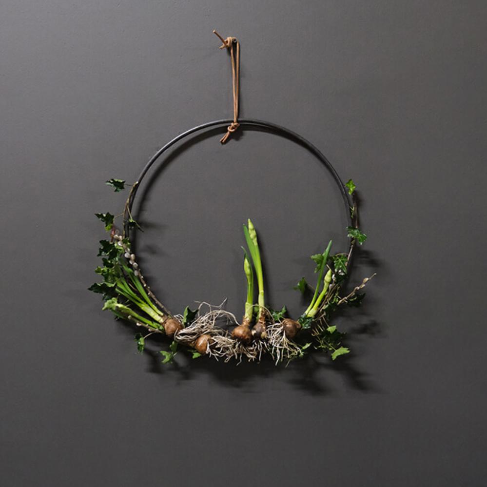 Simple, raw, and stylish iron ring that can be used in countless ways in your interior. The ring measures 40 cm in diameter and can be hung directly on the wall, placed on a door, or suspended from the ceiling with ribbon, string, or chain. It serves as a creative base that you can decorate according to season and occasion. Wrap it with spruce and cones for Christmas, adorn it with fresh branches and spring flowers for Easter, or use dried flowers and grasses for a more timeless look. It can also be transformed into a personal advent calendar by hanging 24 small gifts from the ring. On the wall, it easily becomes an alternative picture frame, hang small photos, cards, or keepsakes inside the ring to create a unique display. Placed flat on a table, it can be decorated with candles, flowers, or seasonal ornaments as part of a cozy table setting. A minimalist iron ring with endless possibilities, limited only by your imagination. Also available in a larger 70 cm version.