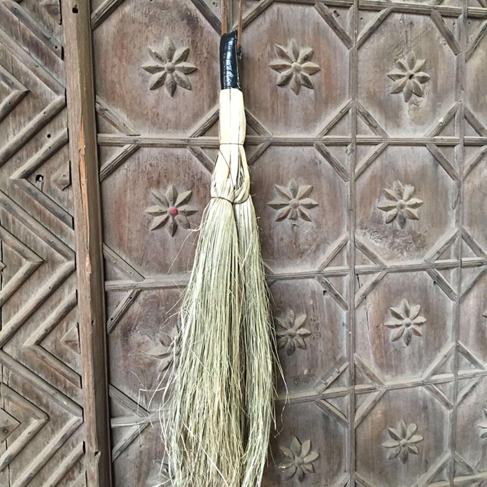 If you can call a broom PRETTY, this one surely is. It is made of bast and has a leather cord. A beautiful and different decoration.
