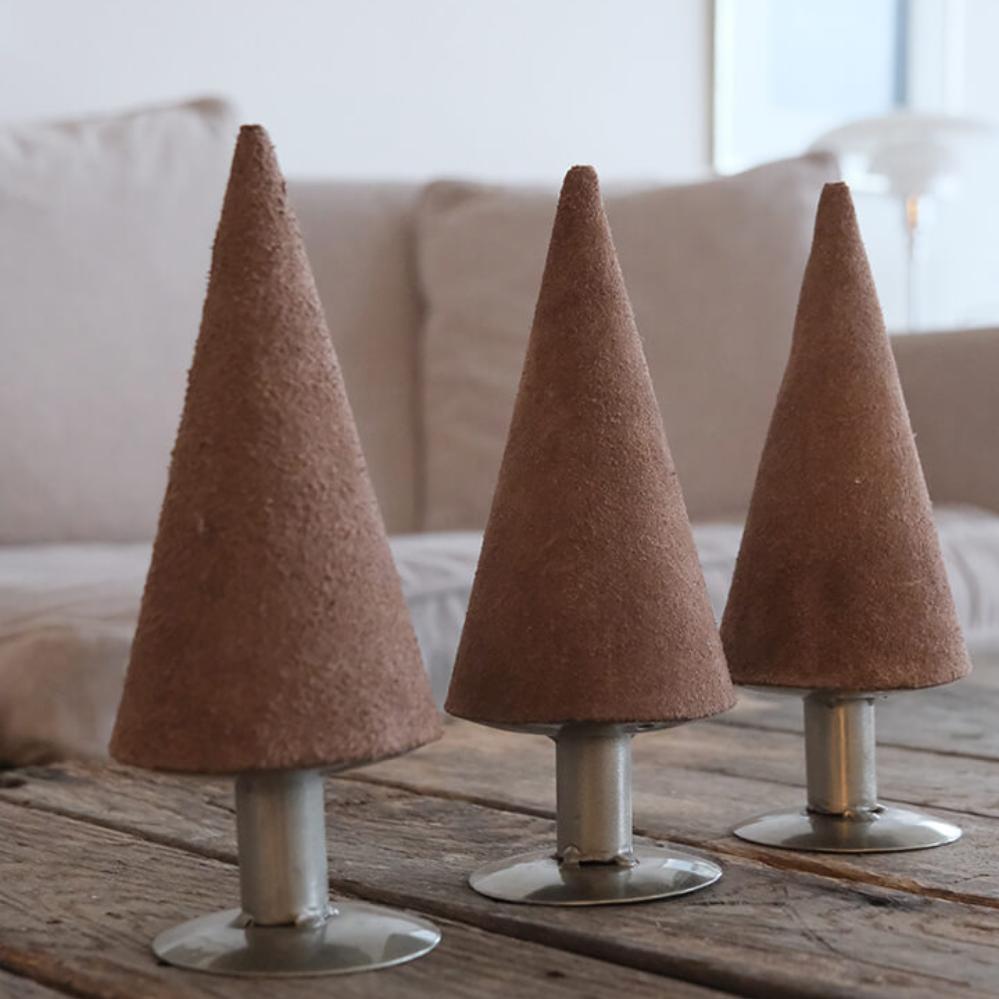 Lovely Christmas tree decorated with suede, which will definitely bring Christmas indoors. The suede gives an exclusive look and a cool counterpoint to the iron base. Mix with other Christmas trees in iron and a few natural elements and make a beautiful stilleben to spread the Christmas spirit.