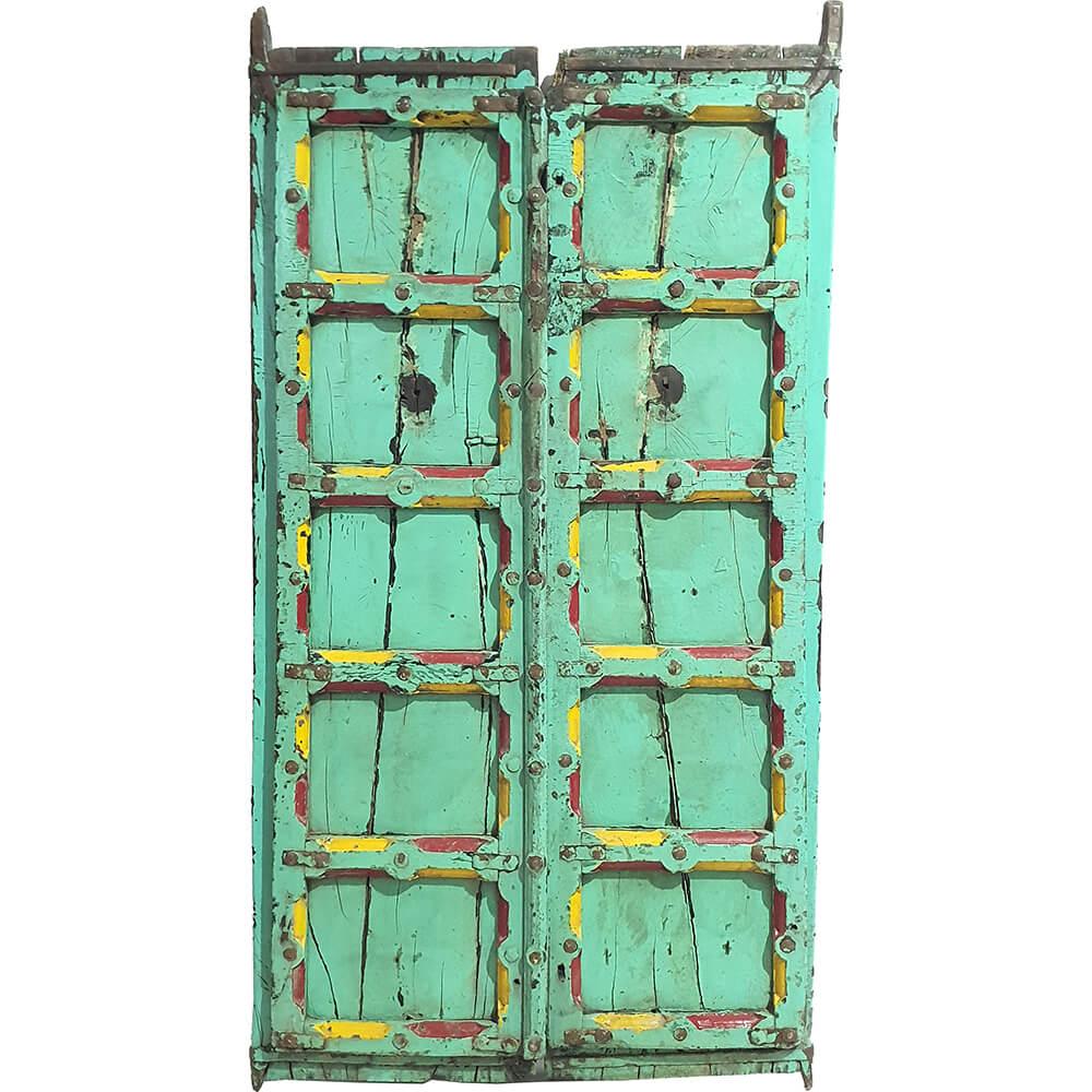 There’s nothing subtle about this door. It demands attention from the get-go. With its bold colour palette of mint green, yellow, and red, it’s a striking blend of bohemian spirit, history, and raw charm. The sturdy construction, visible fittings, and multitude of small panel frames give the door a graphic and ornamental edge. Cracks and wear tell their own story, and that’s exactly what makes it so irresistible. It has stood up to wind, weather, and time, and come out even more beautiful. Use it as wall art, an unconventional headboard, or a dramatic statement in a shop interior. One thing’s for sure: this door says what it means, and means what it says.