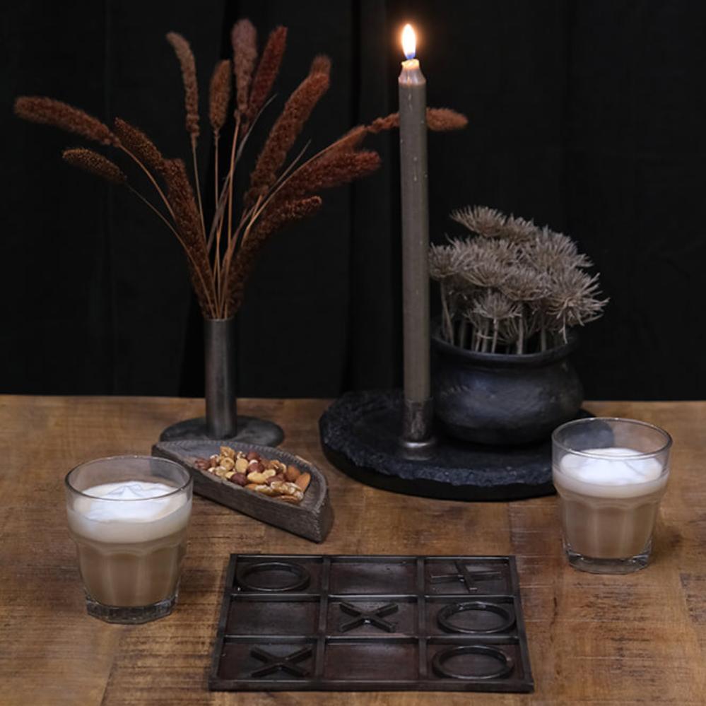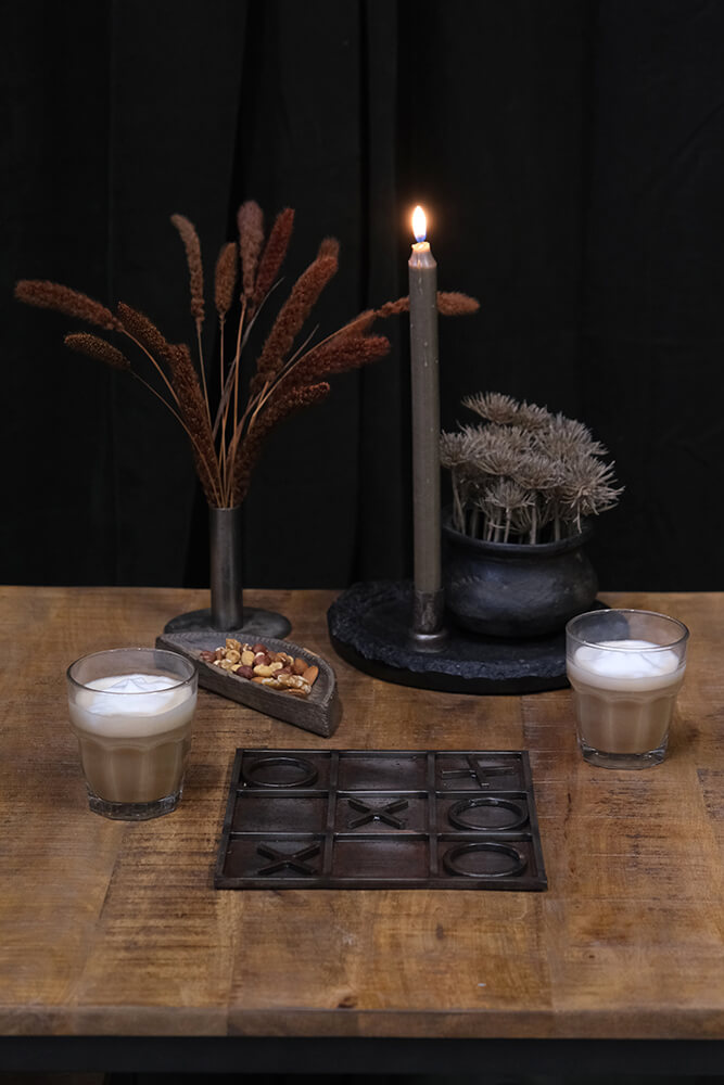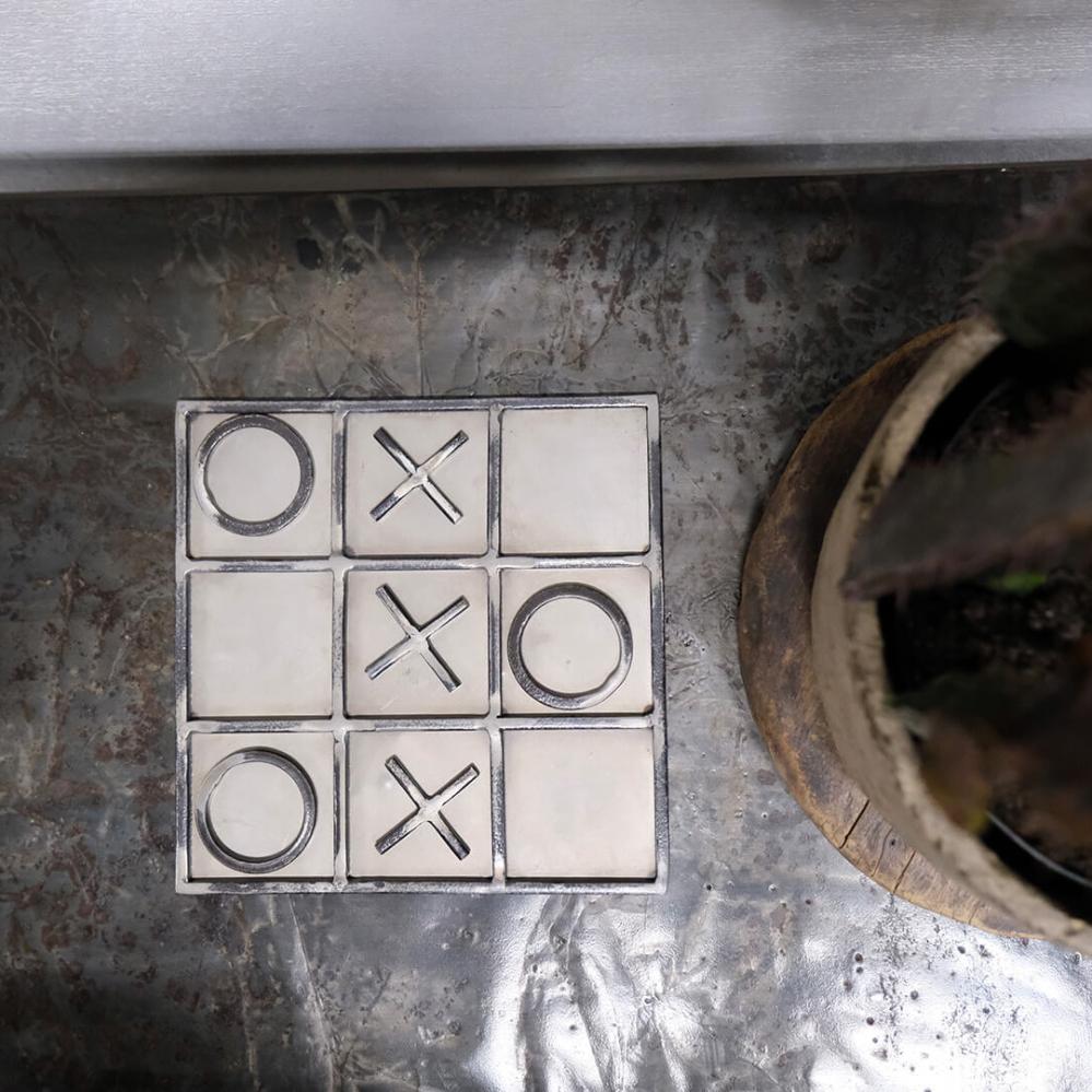 Here is an extraordinary version of the classic game "Noughts and Crosses" for the enjoyment of both children and adults, made in powder-coated iron. This is the game you want to have on display, as it is both fun and decorative, but also gives rise to play and fun.