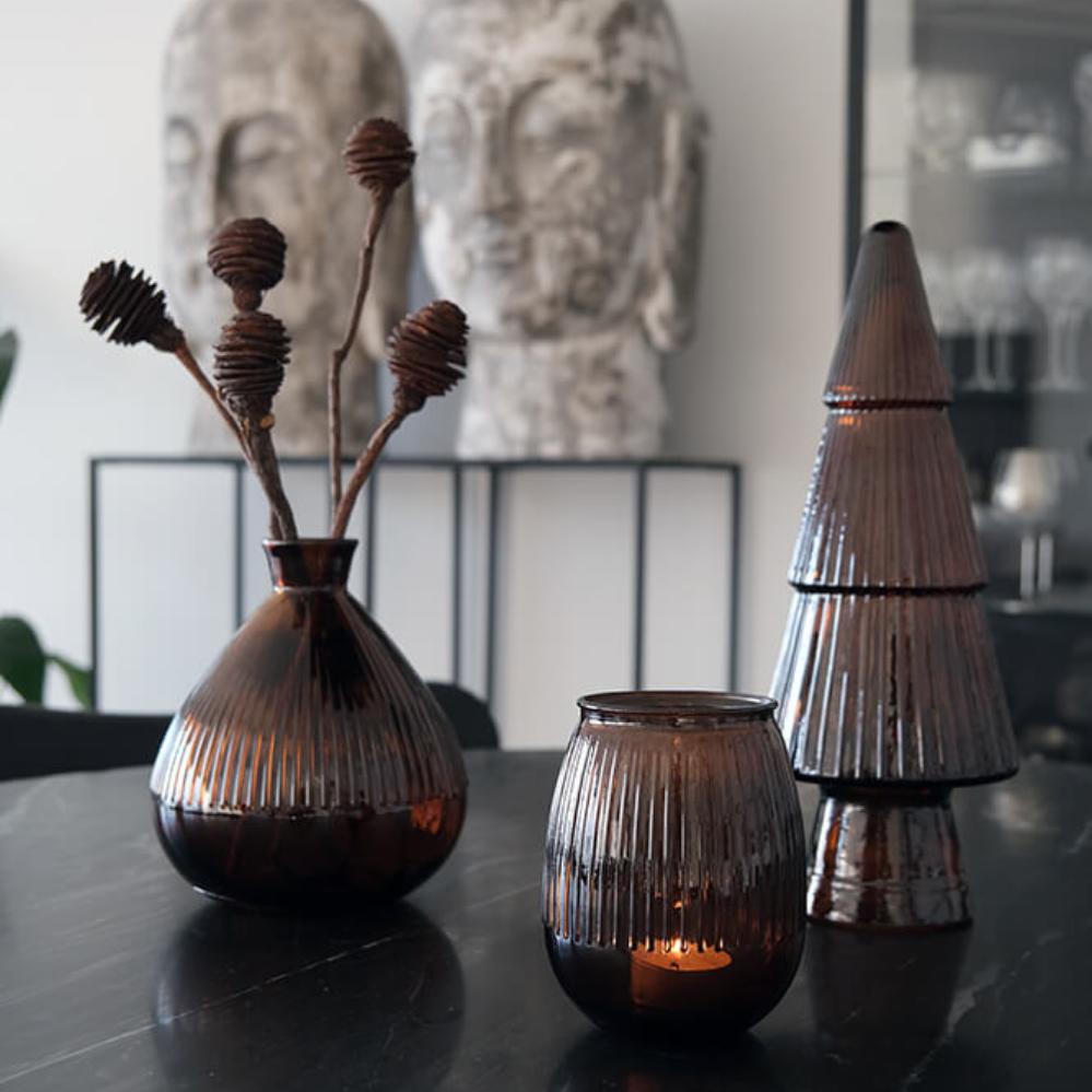 The deep brown colour gives this Christmas tree in recycled glass a warm and earthy look. The ribbed surface catches the light in the most charming way and brings a cosy feel to any space. Style it with other dark tones or natural elements to create a calm and personal holiday display that speaks softly but leaves an impression.