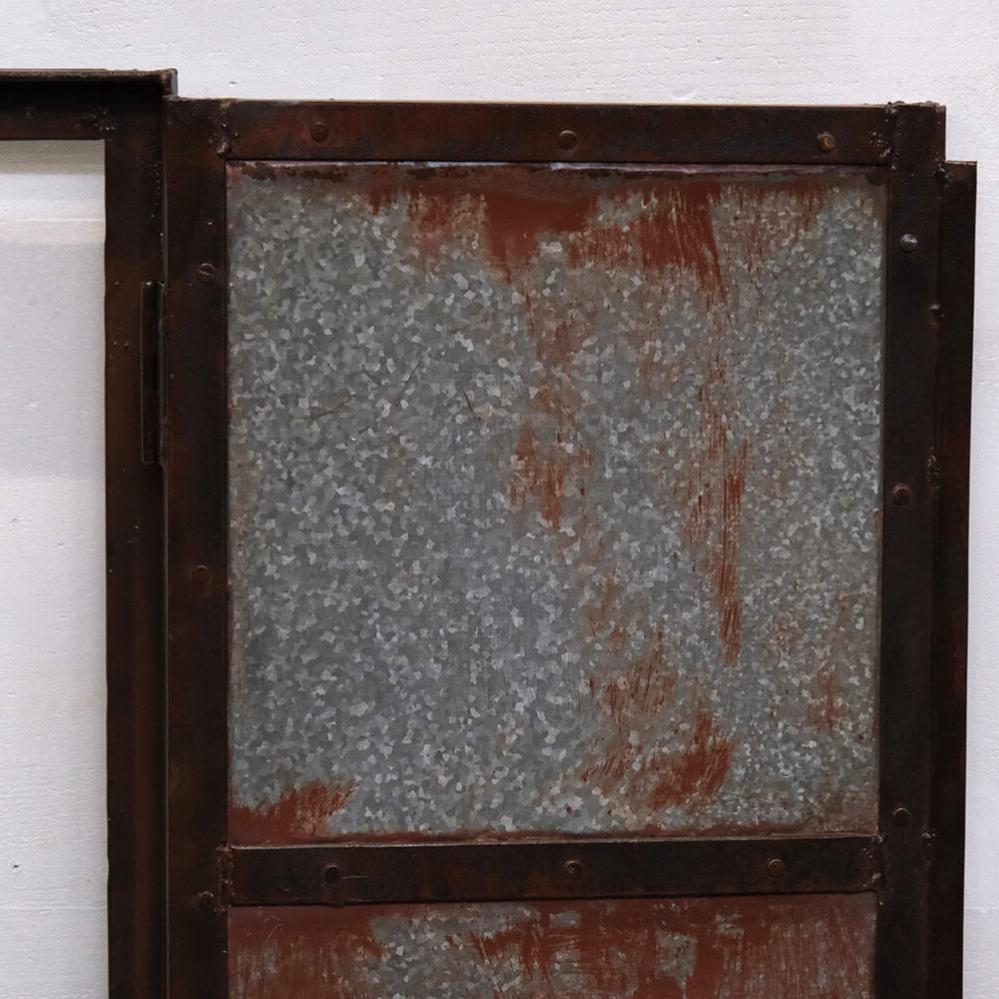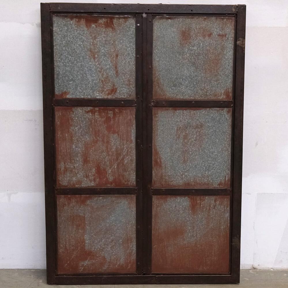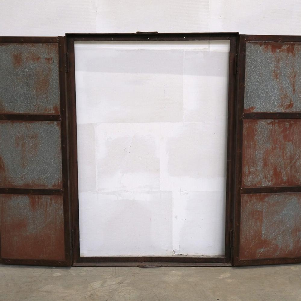 Raw old industrial window frame section in iron. It is without glass and can be opened so that there is an unobstructed view. Hang it up as if it were a picture, or built into a wall, a fun idea that for sure will create an effect between two rooms. It can also just stand and create a really raw atmosphere in your interior.