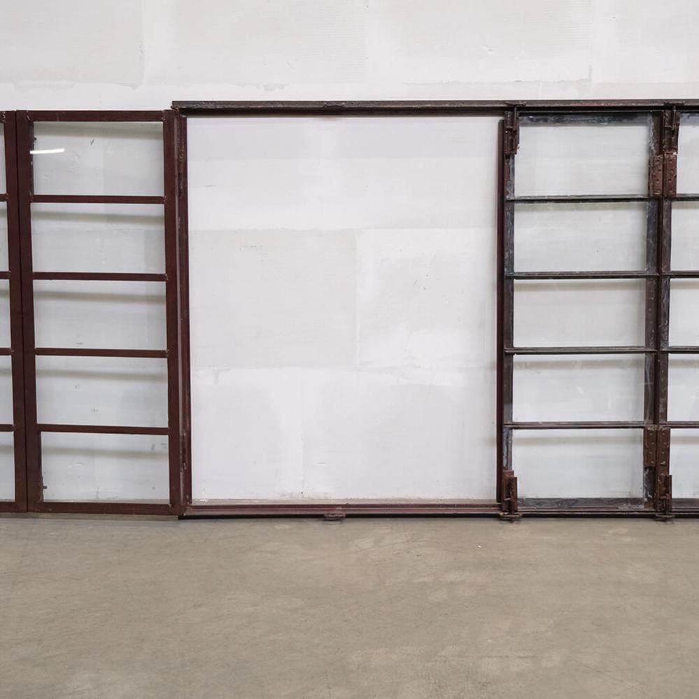Charming and unique room divider. The window frame is divided into four foldable sections that can easily be folded to the side, creating an impressive and spacious opening. The frame originates from an old factory and is made of iron that has developed a rustic and beautiful patina over time, which adds an authentic vintage feel to the frame. To preserve and highlight its character, the frame has been clear lacquered, giving it a nice and protective finish.
