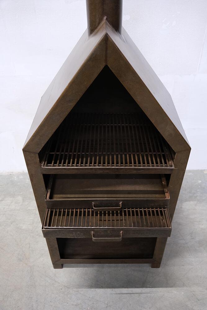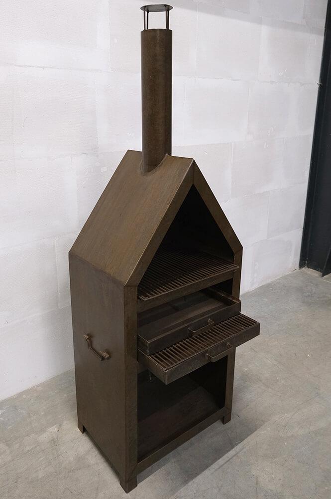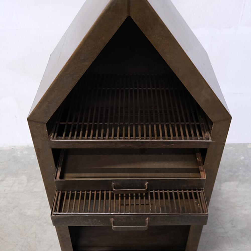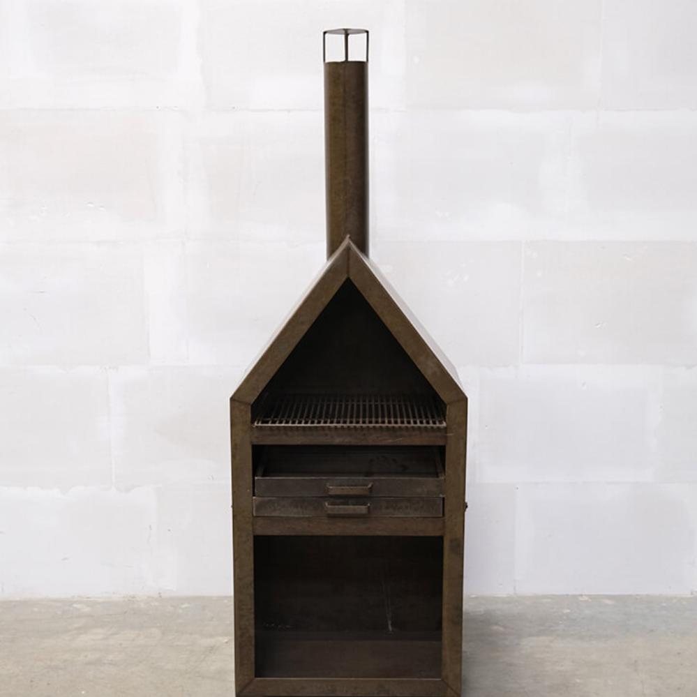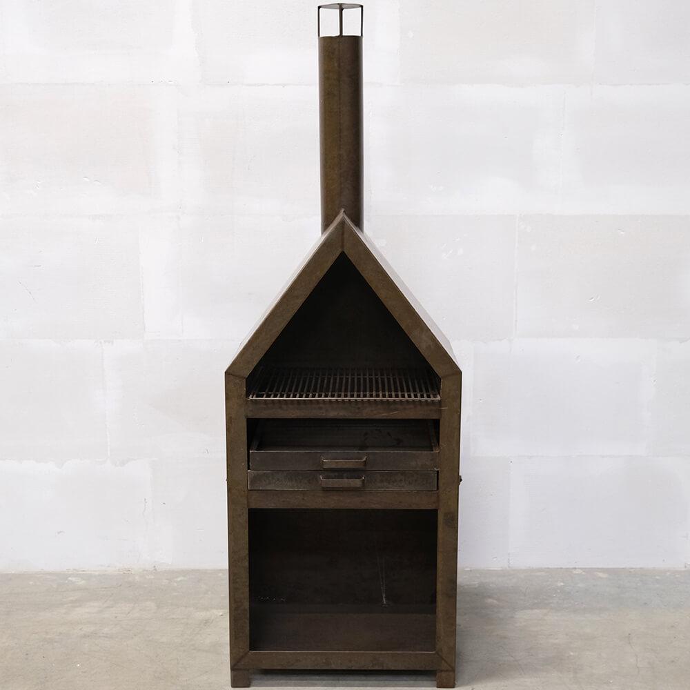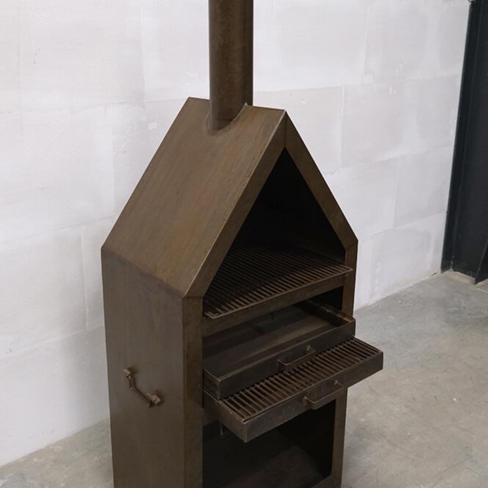This outdoor iron stove is the ultimate combination of function and raw style. With its house-like shape and rustic surface, it brings both warmth and character to any terrace or garden. The iron stove can be used both as a grill and a fireplace, equipped with a grill grid, two trays, and an integrated log holder. Place it in the center of your outdoor lounge at the restaurant so your guests can gather around the warmth and enjoy themselves. Or use it at home to create a raw, cozy atmosphere on the terrace—perfect for grilling a steak or keeping the fire going. With this outdoor garden stove, you get both functionality and a standout garden fireplace with a grill!