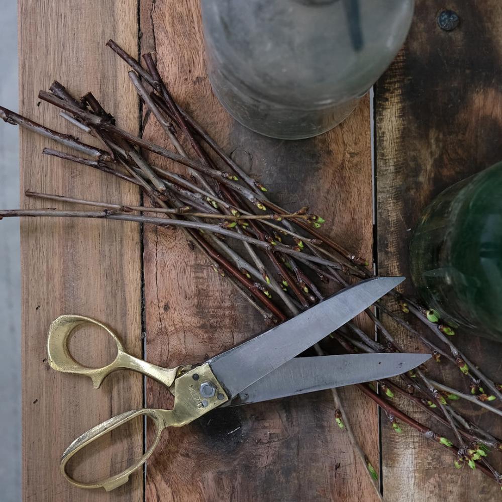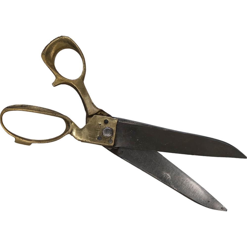Large nice vintage tailor scissors with iron blade and brass handle. Here you get a nice pair of scissors in a really good cutting quality, which also fits well in the hand due to the tailoring handles. In addition to the good cutting quality, you also get a wildly beautiful pair of scissors, which certainly does not need to be hidden away, and which can be used as a detail in your decor.
