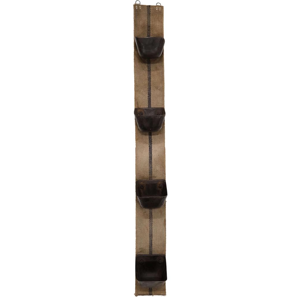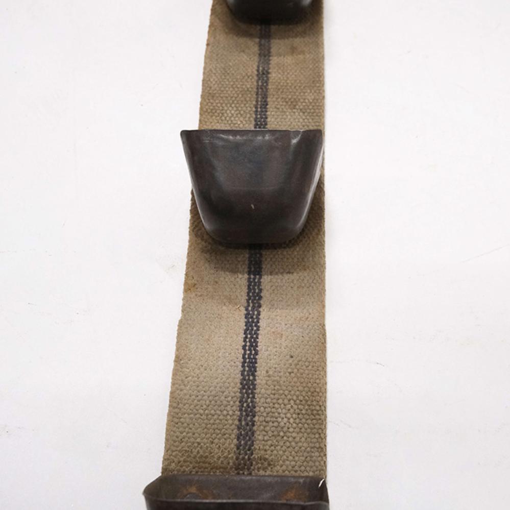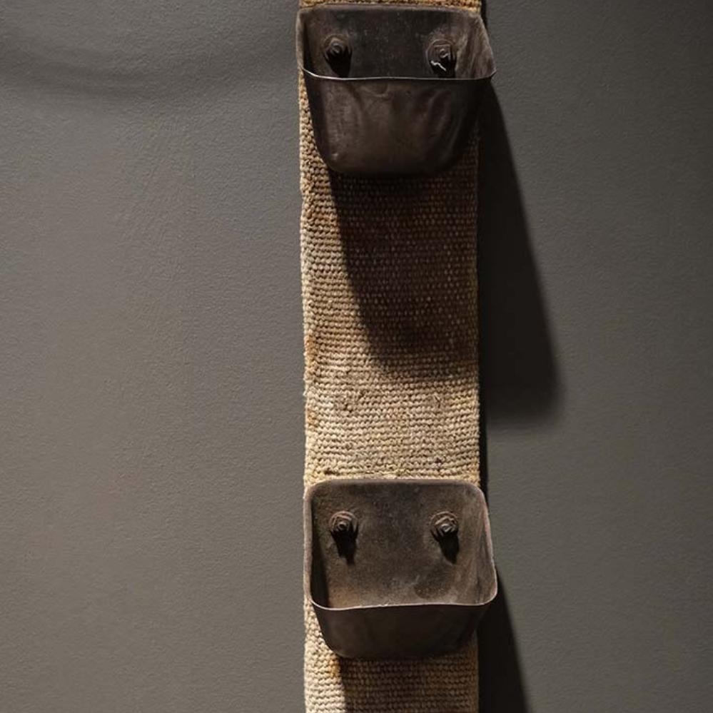 Are you ready for a different wall decoration? Then you will find a good offer here. It is an old, strong strap to which 4 metal cups are attached. This creation was previously used to transport water in the Indian agriculture. We only have two fittings installed so you can hang it on the wall and use it for small green plants, tea lights, various storage purposes or decorate for the holidays of the year. Please note that there may be deviations in color, design and size. For those who value upcycling.