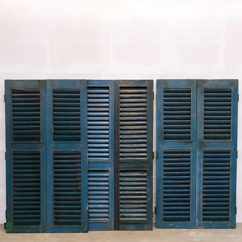 Beautiful old window shutters that are blue-green. Use the wonderful patinated window shutters as a distinct and unique wall decoration in your shop or restaurant. Please note that the size and colour may vary.