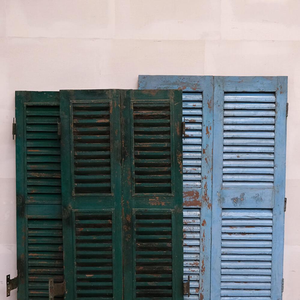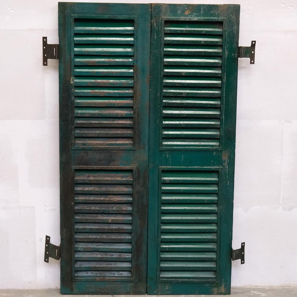 Beautiful old window shutters with slats. Use the beautiful patinated window shutters as a distinct and unique wall decoration in your shop or restaurant. Please note that a variation in colors and sizes is to be expected.