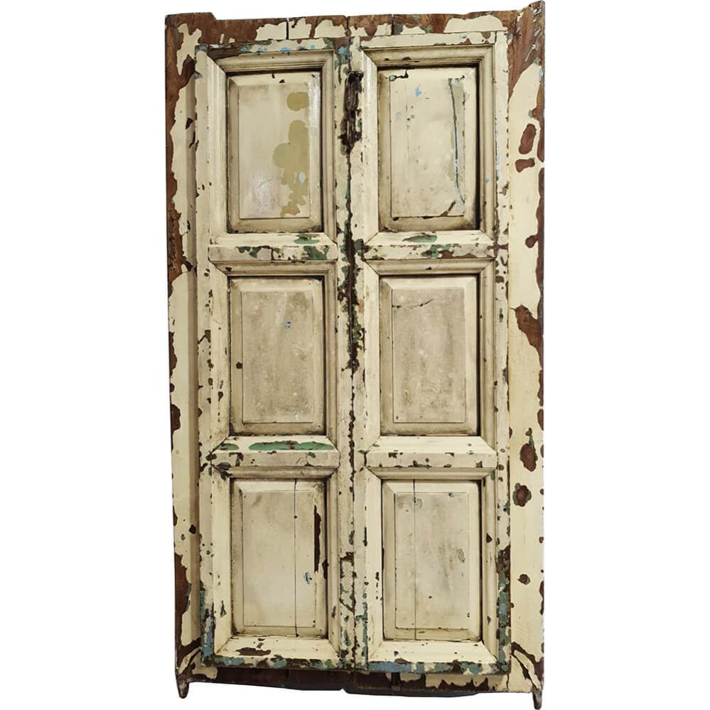This beautiful wooden door in a muted cream tone has clearly lived a long and colourful life. The flaking paint reveals glimpses of earlier times and hues, giving the door a look that simply can’t be recreated, it can only be worn into existence. With its classic panels and raw patina, the door serves as a decorative detail in both modern and rustic interiors. Place it against a wall, hang it as wall art, or give it new life as a unique door in a creative project. Every scratch, mark and paint spot is part of its story.