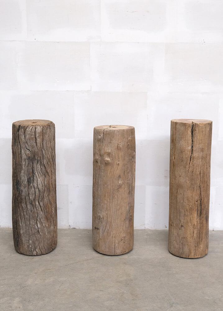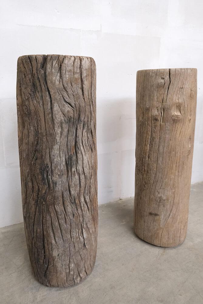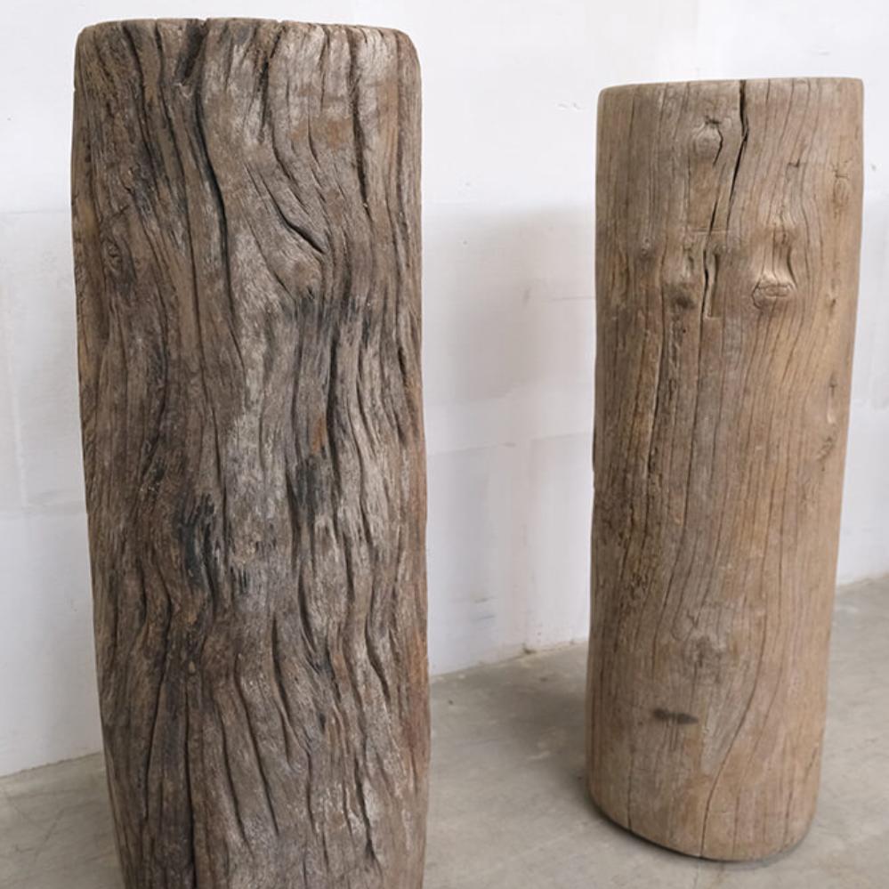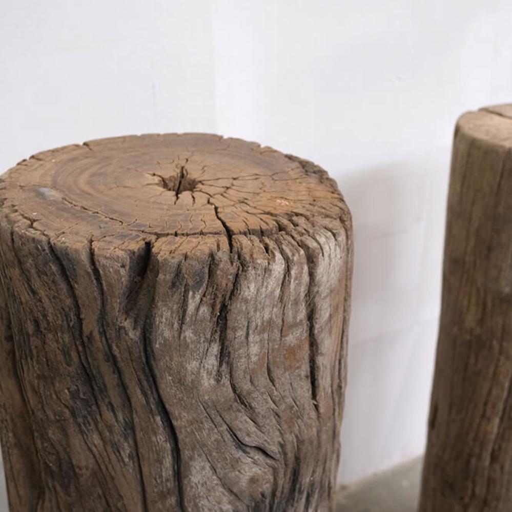 These solid wooden pedestals haven’t just stood firm, they’ve stood strong. Originally used in Indian industry, they’re now ready for a new chapter with a different kind of presence. Each pedestal carries the marks of time, use, and real craftsmanship. From cracks and wear to grains and knots that make each one unique. Use them as bases for sculptures, plant stands, small artworks, or let them stand alone as sculptural objects in their own right. They instantly add a raw, rustic atmosphere to both modern and industrial interiors and work just as well in an entryway, living room, or gallery. With these pedestals, you’re getting real character in wooden form. No fuss. Just solid, unpretentious, and authentic.