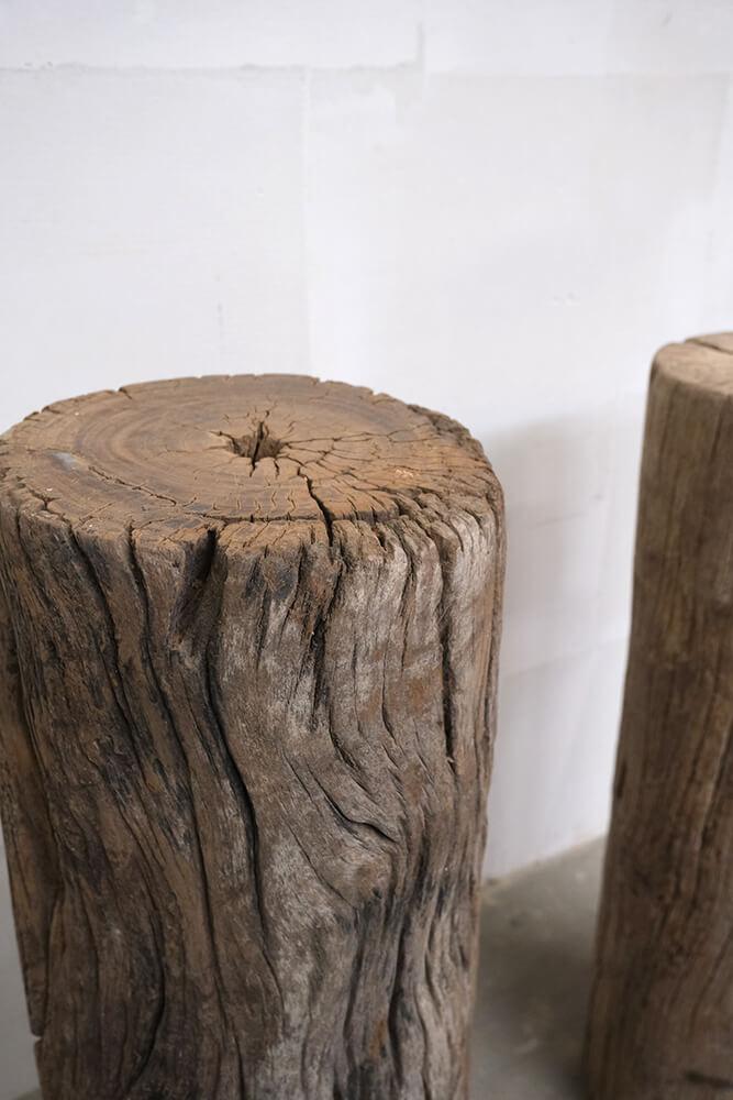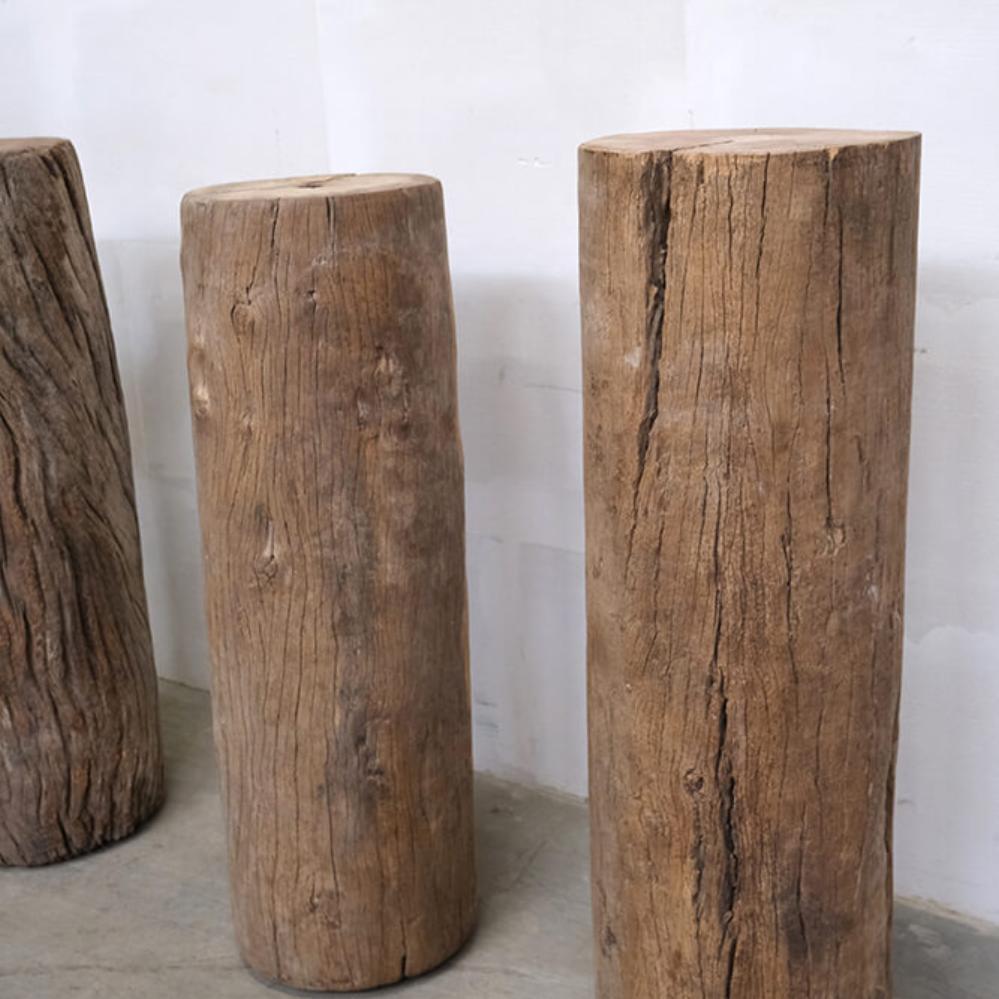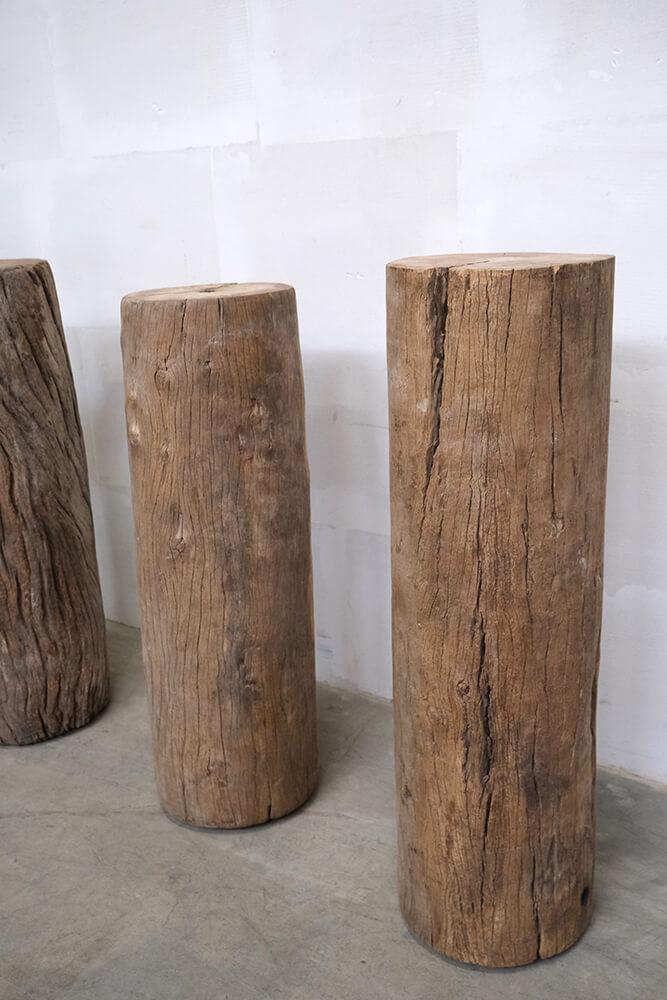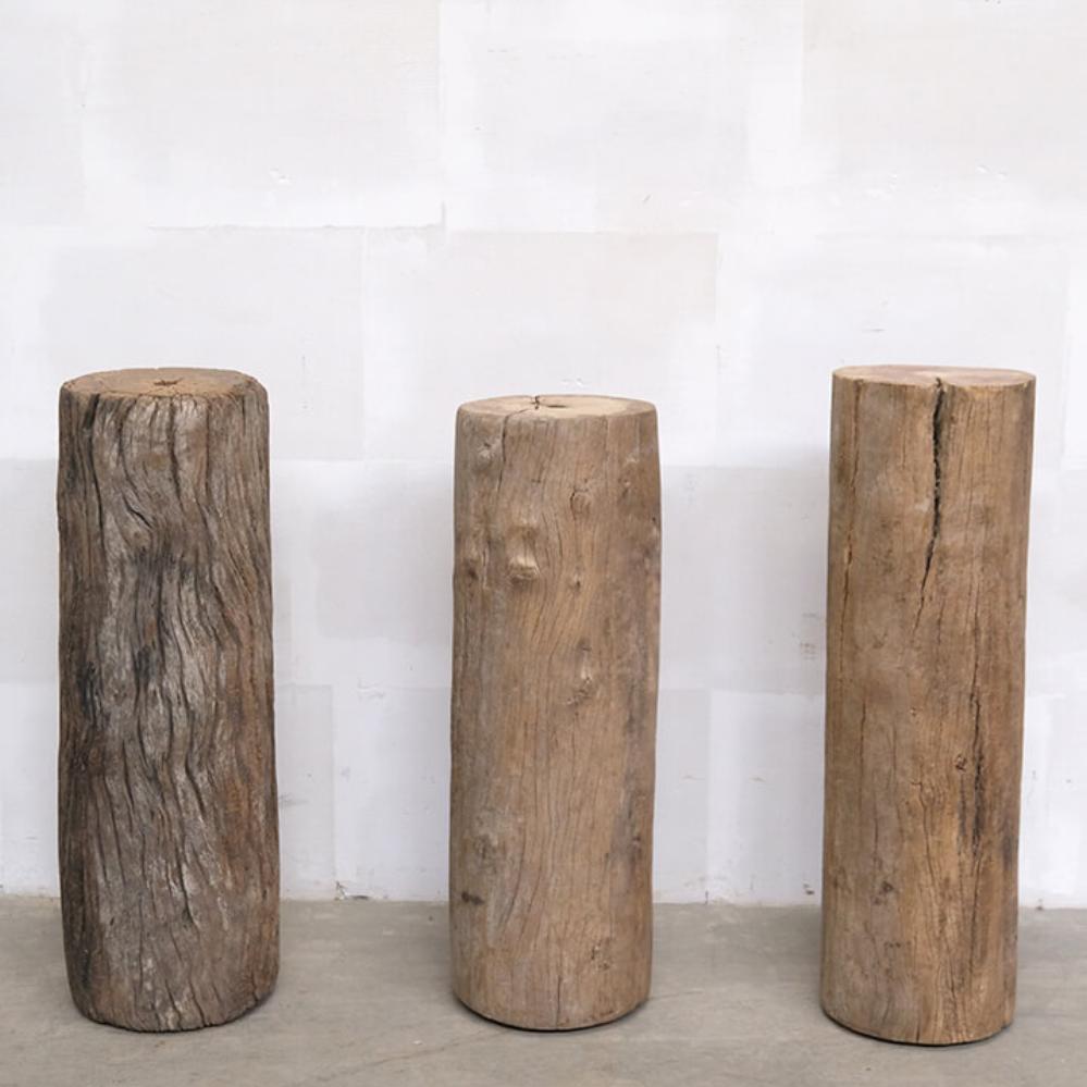 These solid wooden pedestals haven’t just stood firm, they’ve stood strong. Originally used in Indian industry, they’re now ready for a new chapter with a different kind of presence. Each pedestal carries the marks of time, use, and real craftsmanship. From cracks and wear to grains and knots that make each one unique. Use them as bases for sculptures, plant stands, small artworks, or let them stand alone as sculptural objects in their own right. They instantly add a raw, rustic atmosphere to both modern and industrial interiors and work just as well in an entryway, living room, or gallery. With these pedestals, you’re getting real character in wooden form. No fuss. Just solid, unpretentious, and authentic.