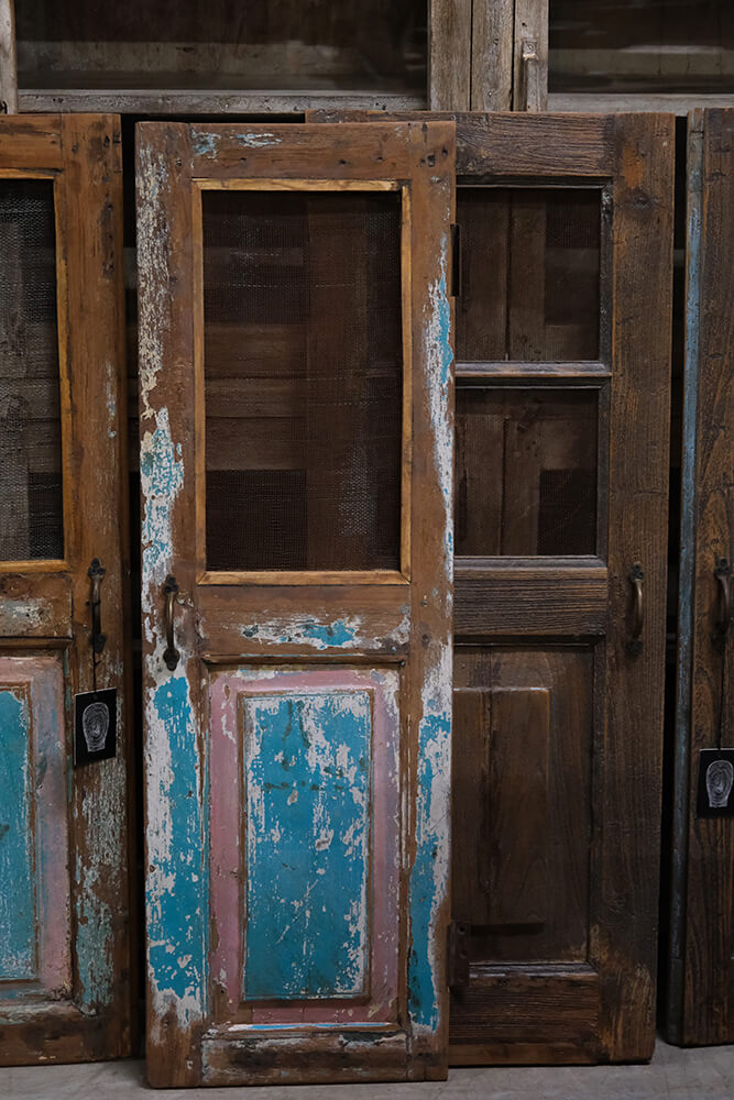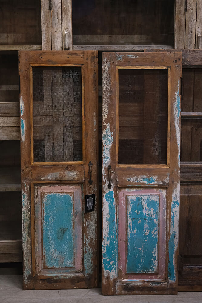 A set of old shutters that were also previously used as shutters in India. All are different in color, size and finish. You can use them as saloon doors for room partitioning - or as cabinet doors or an untraditional wall decoration. For those who value reusing.