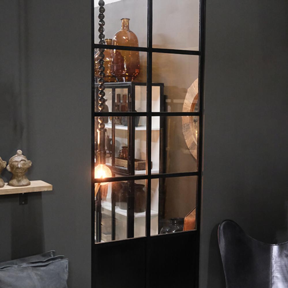 Large partition wall in iron with a modern simple design - black and with 8 glass windows. Partition walls are one of the most popular decoration trends of today. Functionality and beauty goes along with this popular item. Nominated for „Product of the Year“ at the Formland Fair #formlandbloggerprize2018. Comes without fittings. Consult with a carpenter how it can be mounted.