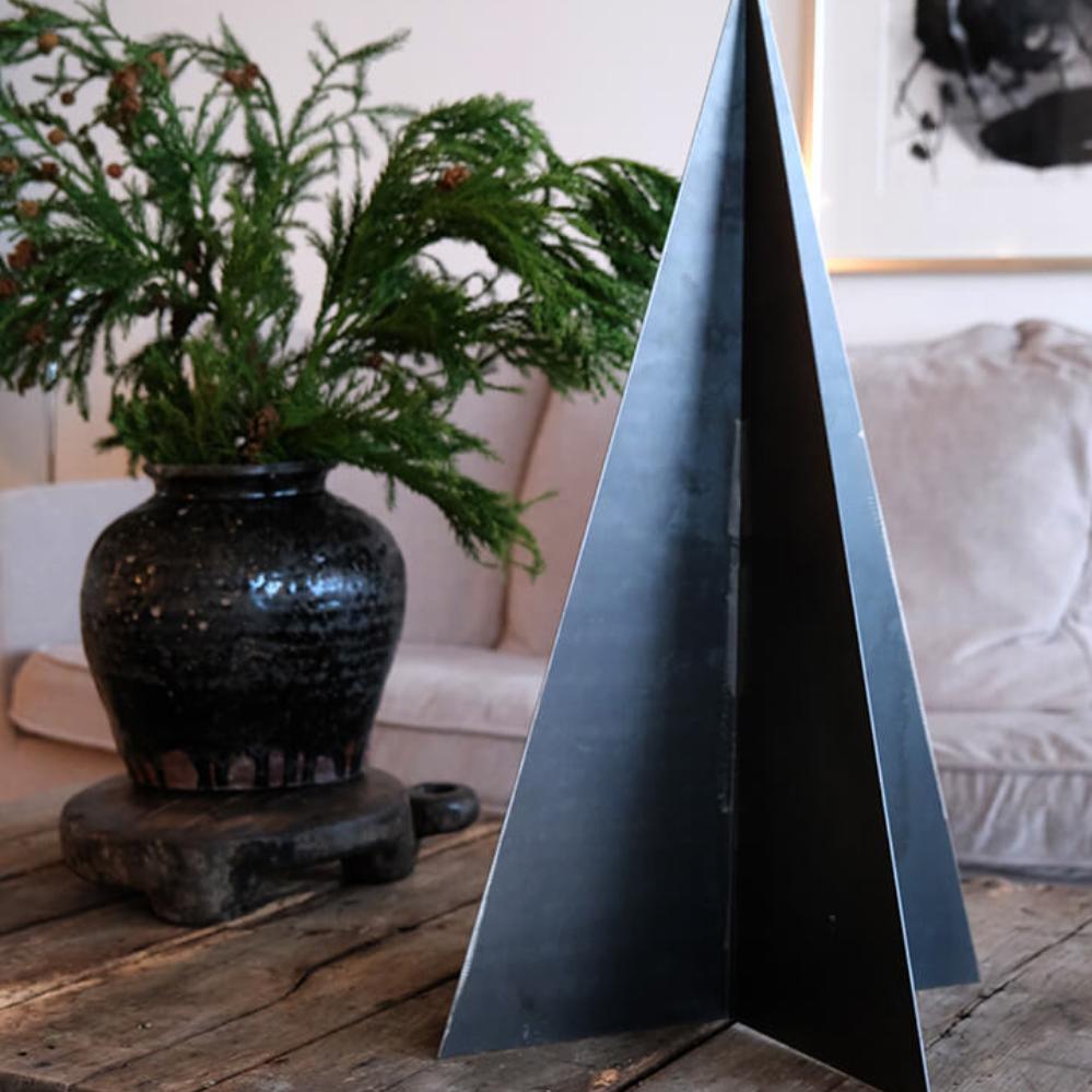 70 cm high, beautiful, raw Christmas tree in iron that can stand on your floor, or on a table in your shop or restaurant. The Christmas tree will give a raw touch to your Christmas mood and will be super nice just the way it is. But you can also use it, for example, as a reinterpretation of the traditional calendar with magnets with 24 small quotes, photos, or surprises that will definitely raise the Christmas spirit throughout the month of December. For easier storage, the Christmas tree is supplied as two iron plates that simply need to be put together.