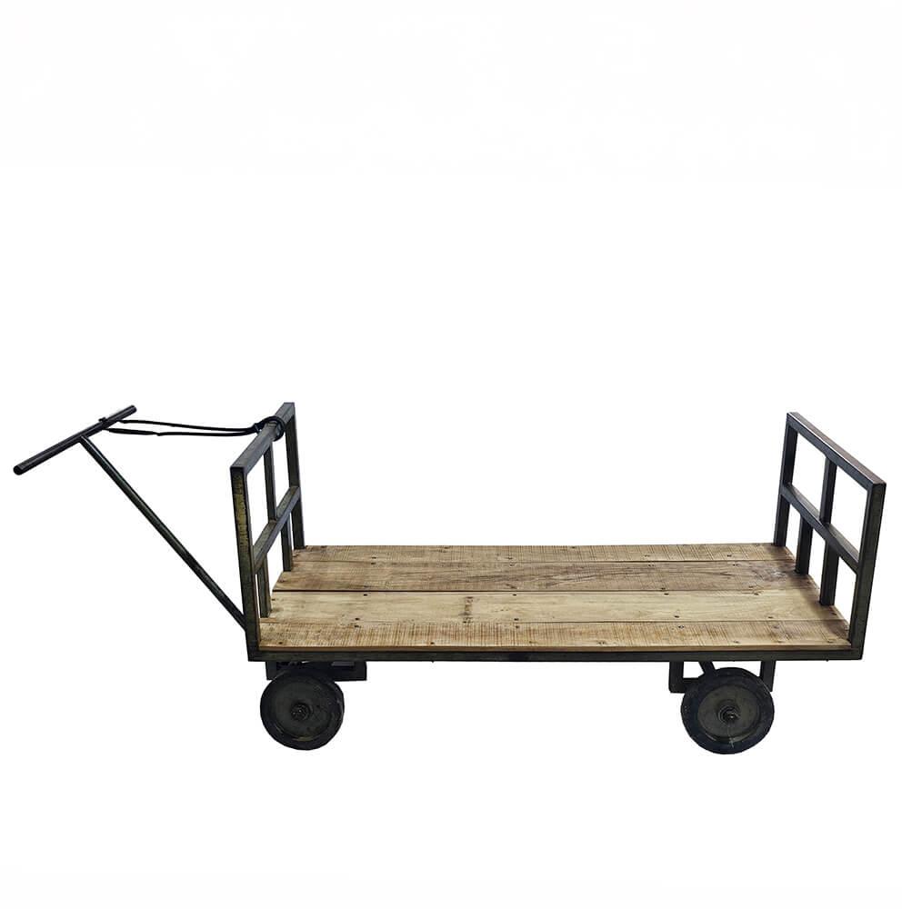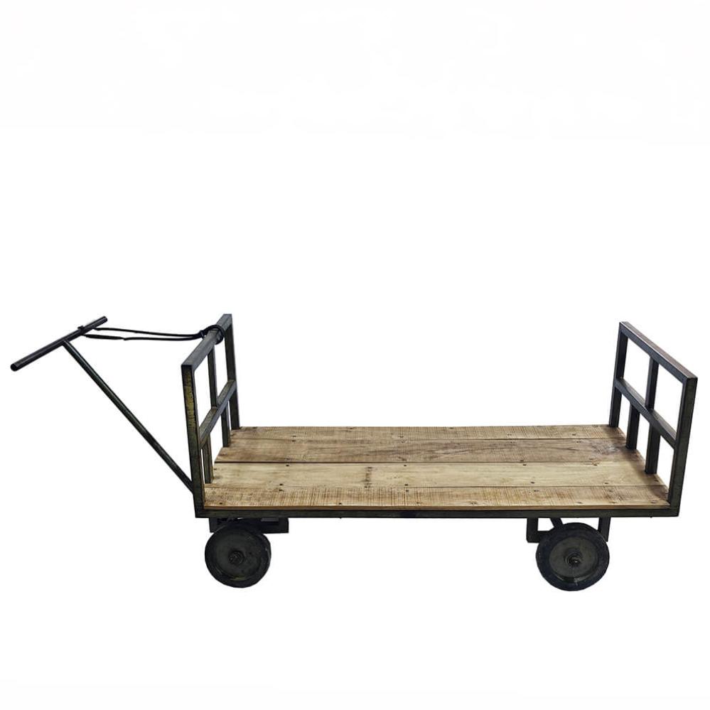 We couldn’t resist this charming market cart when we found the frame in a yard in India. However, we had to replace the original rotted wood with this wooden mango plate. With its sturdy iron frame and robust wooden plate, it can handle just about anything. The strong wheels and simple handle make it easy to maneuver, whether you use it to move goods or as a unique display cart in your shop. If you have plenty of space at home, the cart can function as an unconventional decor piece—perfect as a rolling platform in the garden or as a fun storage piece in the living room. No matter how it’s used, this cart adds a rustic and industrial touch to any setting.