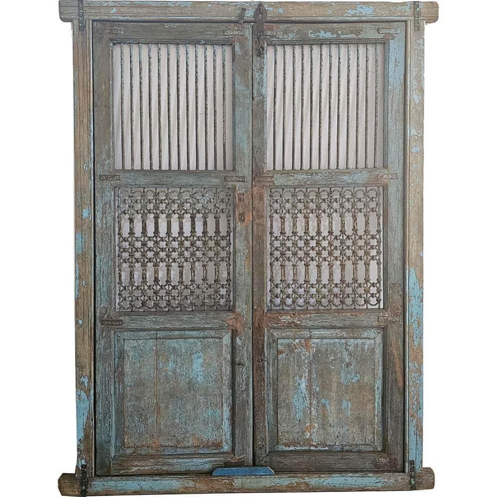 This rustic door with iron grids is a true treasure from the past. The weathered wood and patinated blue-green colour tell stories of many years of use. The built-in iron grids not only add a decorative detail but also create a unique interplay between ruggedness and elegance. This door can serve as a characterful interior element, whether as a room divider, wall decoration, or entrance to a special space. The old door brings raw charm and an authentic atmosphere to any décor.