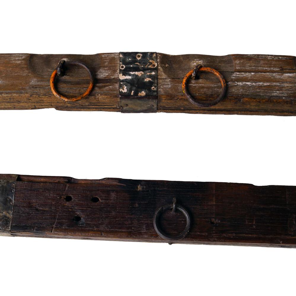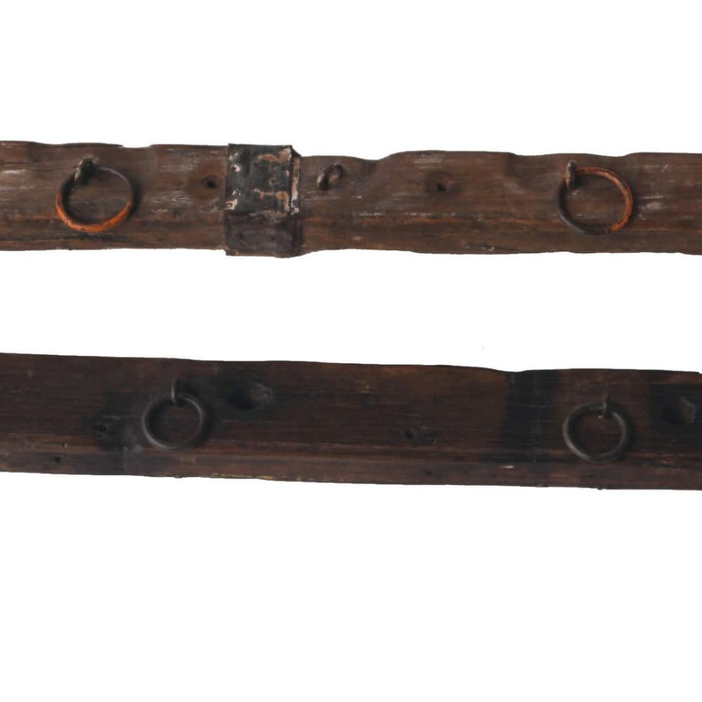 Unique long wooden panel with iron rings and unique details. Hang the wooden panel in the ceiling and install lamps in the rings. It adds an extra rustic dimension to your decor. You can also hang the wooden panel on the wall and hang all kinds of decoration in the iron rings. For you who are creative and want to add a fun and different raw detail to your home or business.