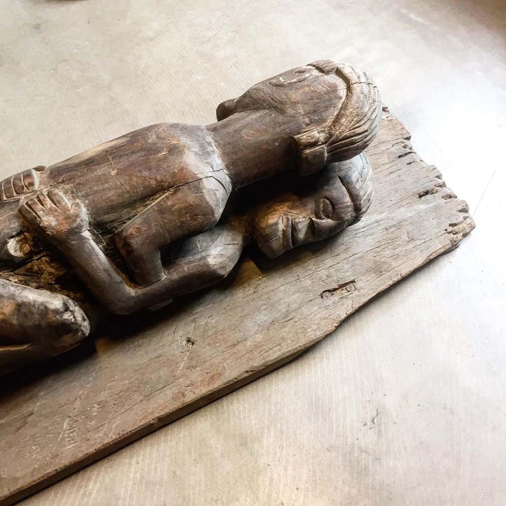 Large rustic old wooden figure "Love". The figure has lots of patina and structure.
