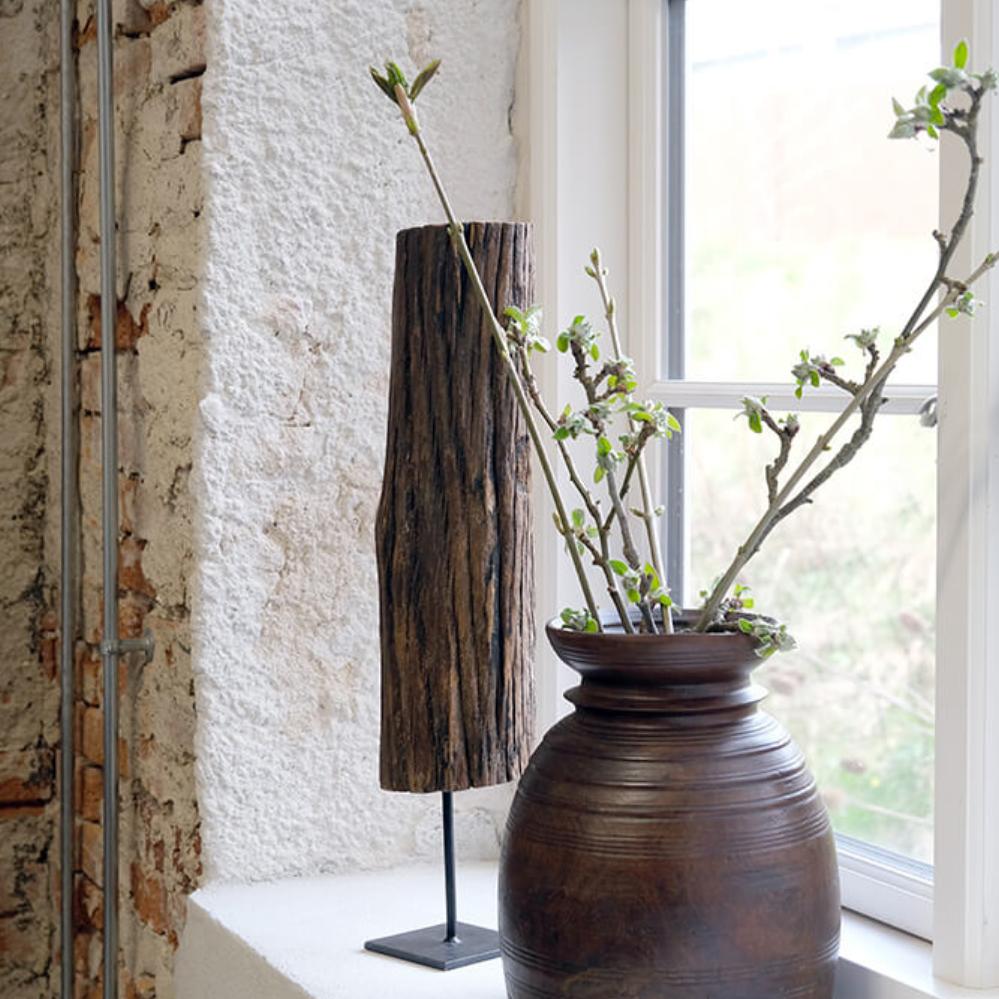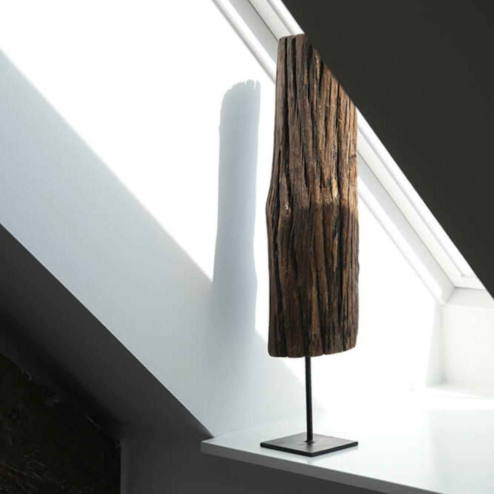 Decorative wooden sculpture on iron base. The sculpture is a large unique piece of old wood with the finest structure and patina. ALL sculptures are different in structure and size.