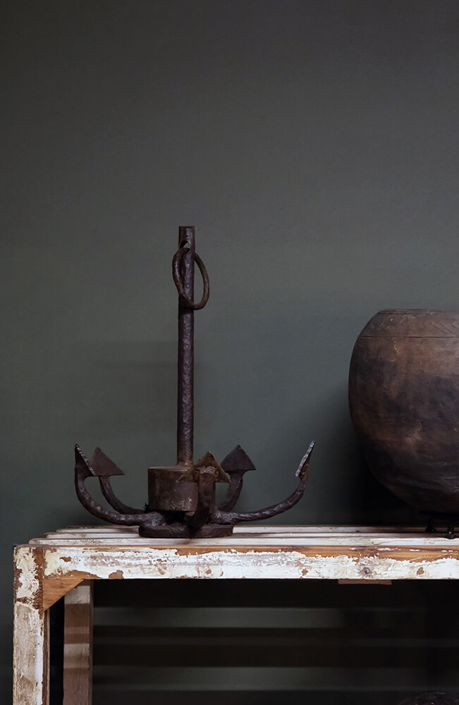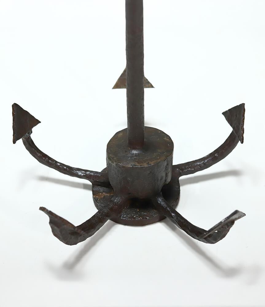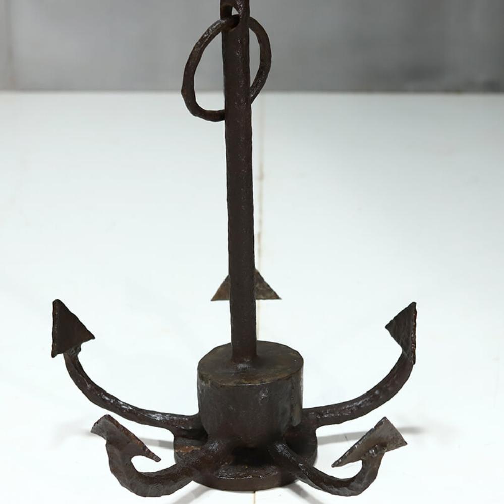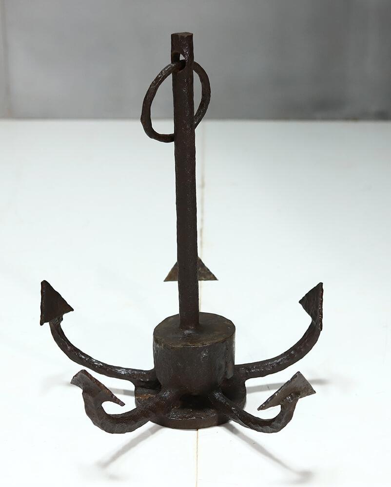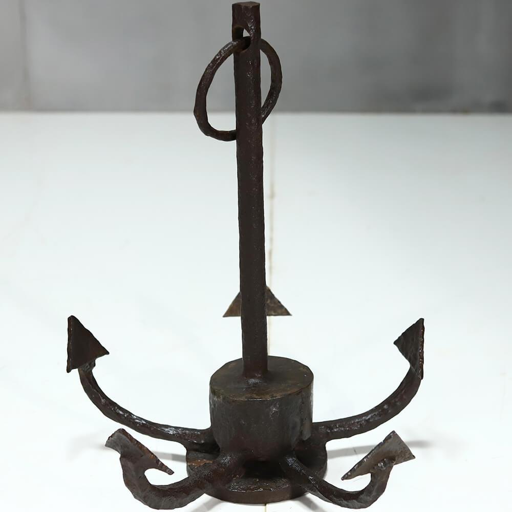 This rusty ship anchor with five sharp hooks has a cool and industrial appearance. The hooks are strong and pointed, giving it a tough and raw look. The anchor is solid and works perfectly as a statement piece in a restaurant decor with a maritime theme. Place it on the floor or hang it from the large eye at the top of the anchor. However, please note that the anchor is quite heavy.
