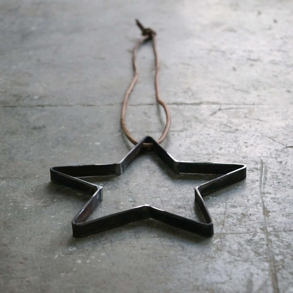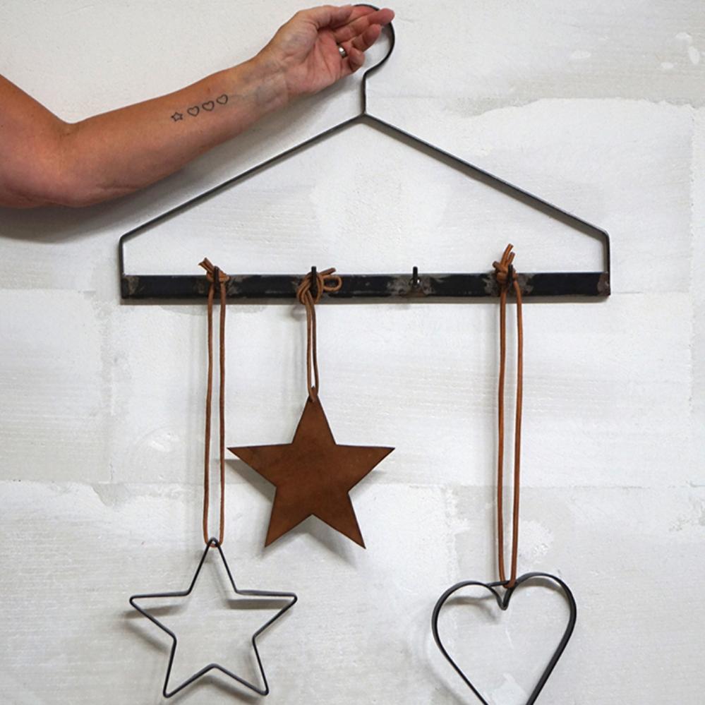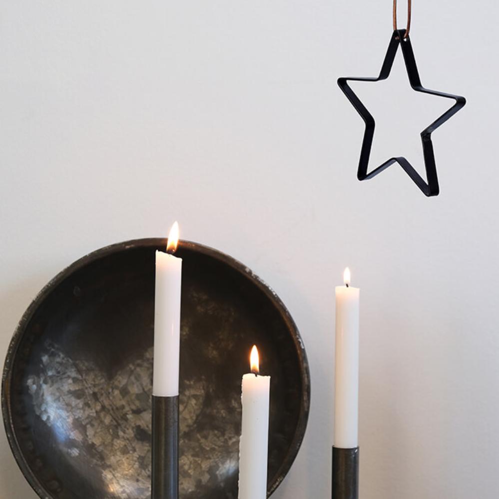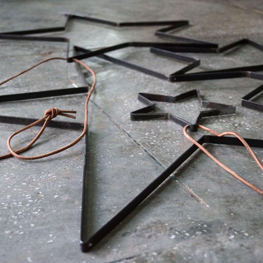 This beautiful iron star with a simple leather cord combines a raw industrial expression with a timeless and elegant design. The clean shape gives it an exclusive look, making it suitable for both modern and more classic interiors. The star can be hung in windows, on walls, or used as part of a creative decoration, where it adds warmth and personality. During Christmas, it spreads a cozy atmosphere, but it can just as easily be used year-round as a decorative element that creates calm and balance in the room. Perfect for emphasizing a cozy atmosphere at home or as a stylish eye-catcher in cafés, where the simple aesthetic supports a relaxed and inviting vibe.