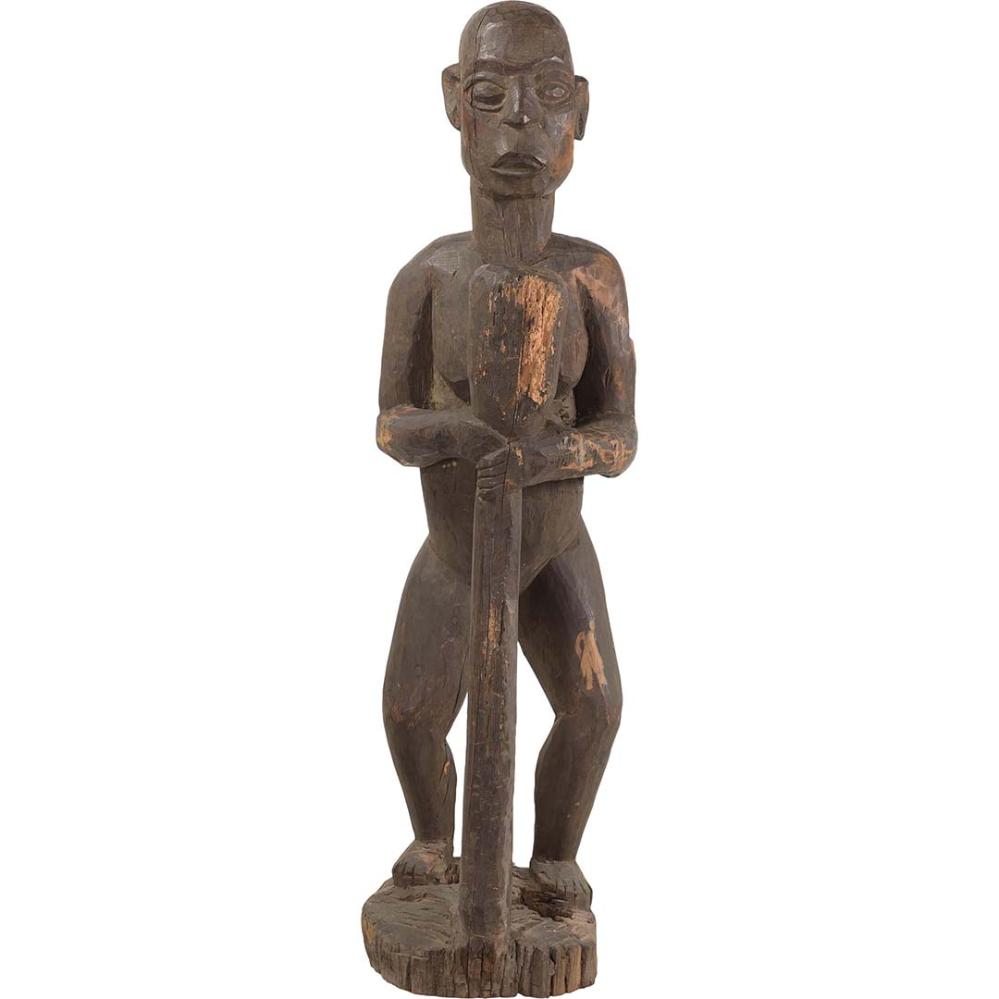 Tall rustic old wooden figure. The figure has lots of patina and structure