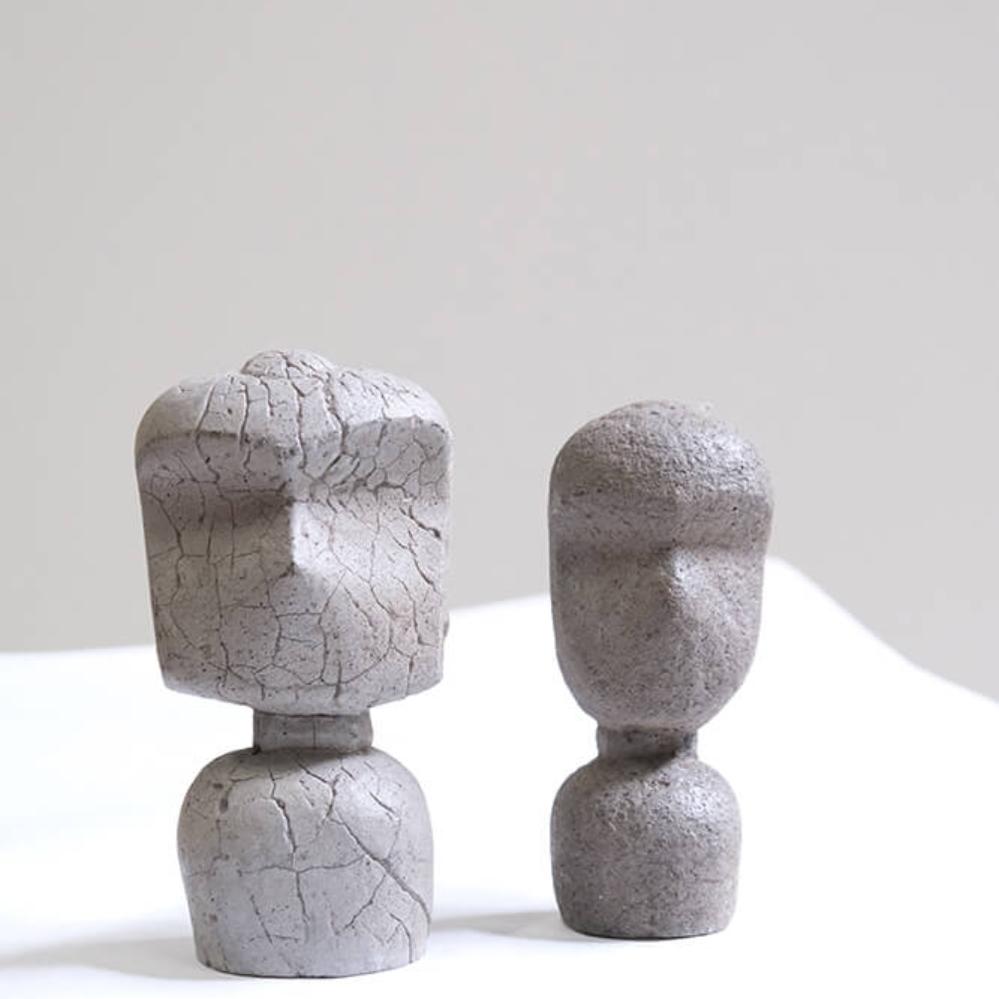 Simple and stylish sculpture made from a mix of clay and cement. The figure has a raw, organic expression with a surface that evokes the textures of nature. With its minimalist form and distinctive look, it can add a personal and artistic atmosphere to your interior. Use it on its own as a striking statement piece or combine it with other decorative elements in a still life arrangement to create depth and balance in the room. The sculpture is also available in a matching, slightly larger version (search word: SG16324), allowing you to create a cohesive look in your home décor.