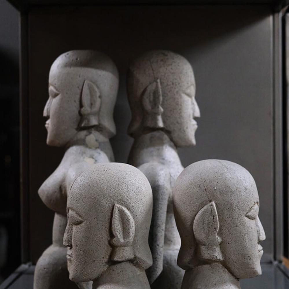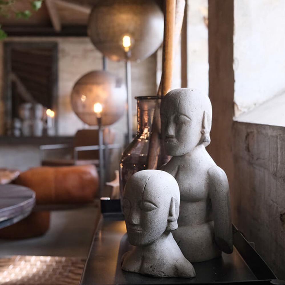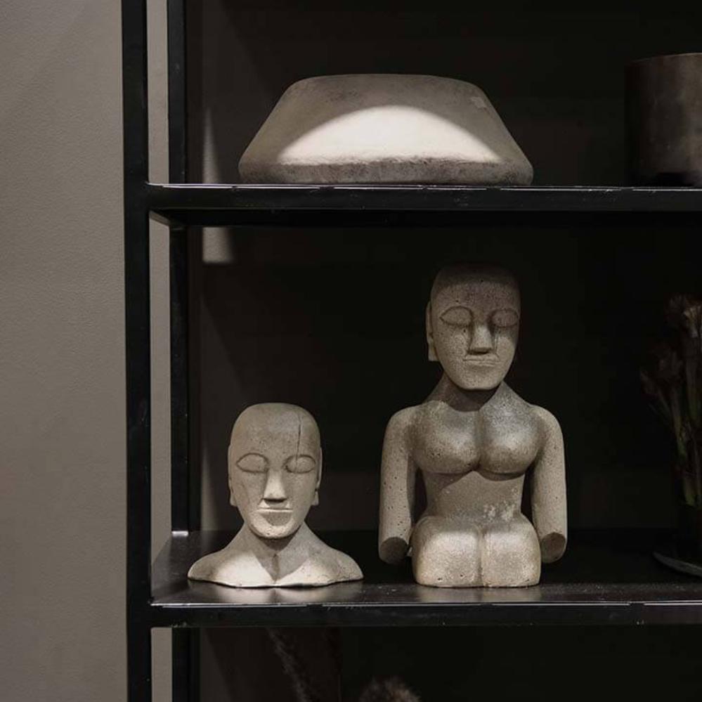 Raw busts with an androgynous expression. With their peaceful countenance, these busts create a sense of calm. The combination of clay and cement gives the busts a raw, concrete-like texture, adding a masculine twist to the figures. The busts can complement a wide range of interior styles.