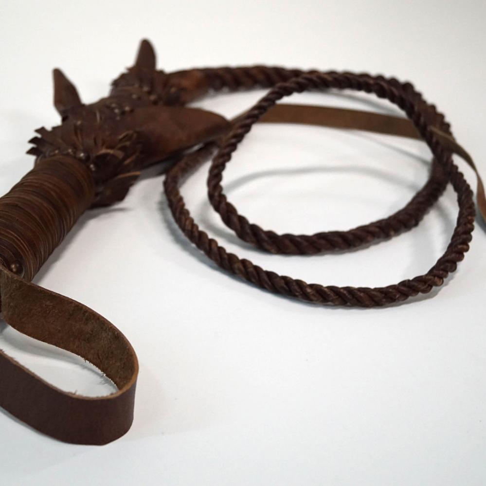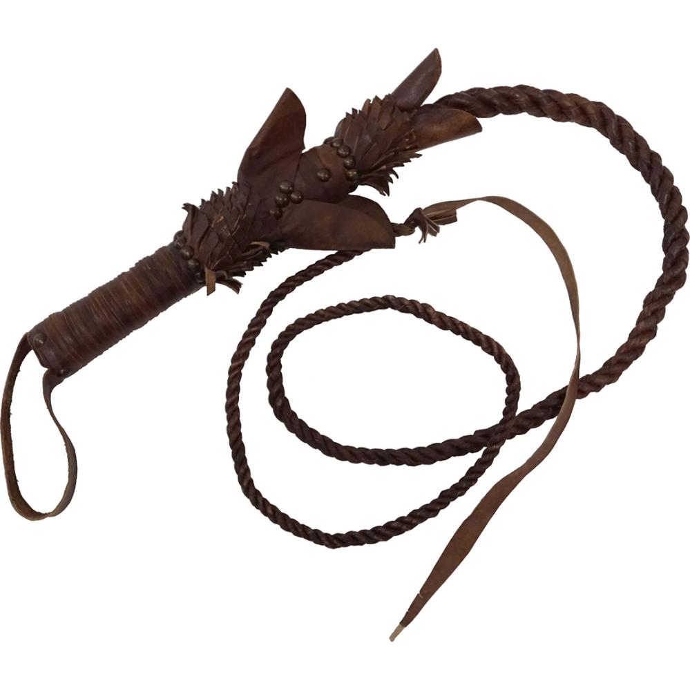 Long leather whip in a nice leather quality with fine details. The leather whip is made in a nice brown color and with a handle. The whip gives the interior atmosphere and a unique touch. Hang the whip on the wall or in a corner in your shop or restaurant to give your decor a humorous but super cool twist.