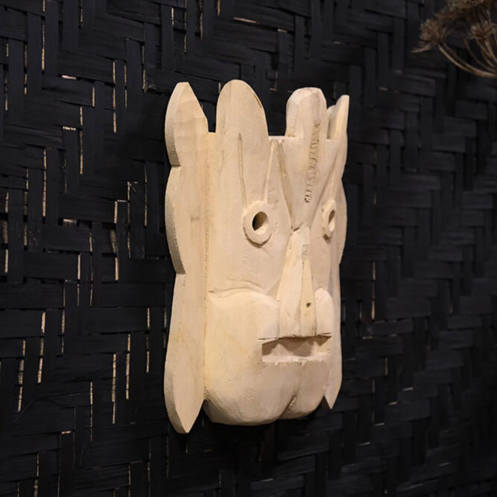 A super cool wooden mask with fine details. The mask can be used as a fun and different wall decoration and it can also add some humor to your decor. The masks have a small "shelf", that makes it possible for you to decorate them with small mini plants or a small candlestick or vase. Note that the masks vary a lot in the structure of the wood.
