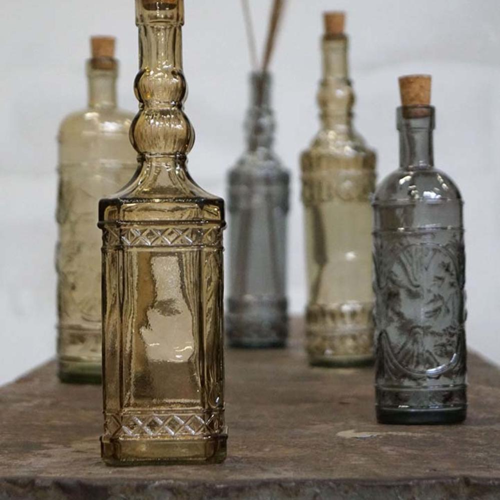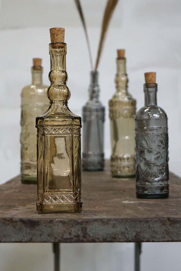 Nice glass bottle with a whimsy silhouette, pattern and cork stopper. The enchanting bottles are suitable for several different decorative purposes. Some will use it as a flower vase for a single stem or branch, while others will use it for oil, beverages or candles. In addition, the glass bottle can also be used as a beautiful decoration in itself, alone or together with the other bottles of the series.