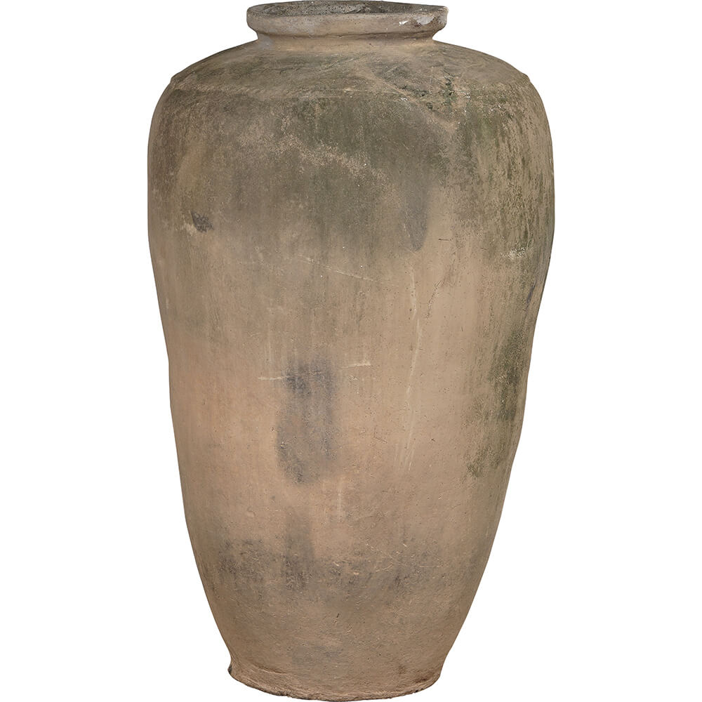 Impressive old clay pot with beautiful shades and traces of time. The tall, elegant shape and raw surface add character to any room. The pots vary in shape, color, and texture, making each one unique. With a height of 110–125 cm, it is an impressive decorative element, perfect for large branches, dried flowers, or as a striking feature in your interior. Plese note: The pot is not waterproof.