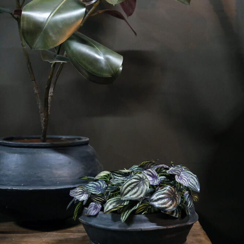Rustic dark clay pot with a beautiful patina. The Benedict clay pot can be used as a decoration in itself, or you can use it for flowers and plants. Also look for the matching Benedict clay pot in size L. They will make a nice pair on your windowsill or on your sideboard. However, the pot is not waterproof, so we recommend to use a plastic insert if you use it for plants.