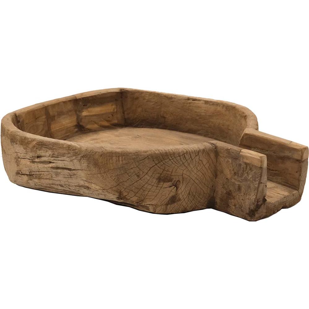 Here you get something out of the ordinary. A fantastic, beautiful and rustic large old wooden tray. The wooden tray was originally used for grinding flour. With this wooden tray you can create an eye-catcher in your interior. It is very rare that we are lucky to find such great unique tray with such a beautiful finish. You can see that they have been placed outside in both rain and drought, this is clearly revealed in the markings in the wood. Each wooden tray is unique in shape, finish and size.