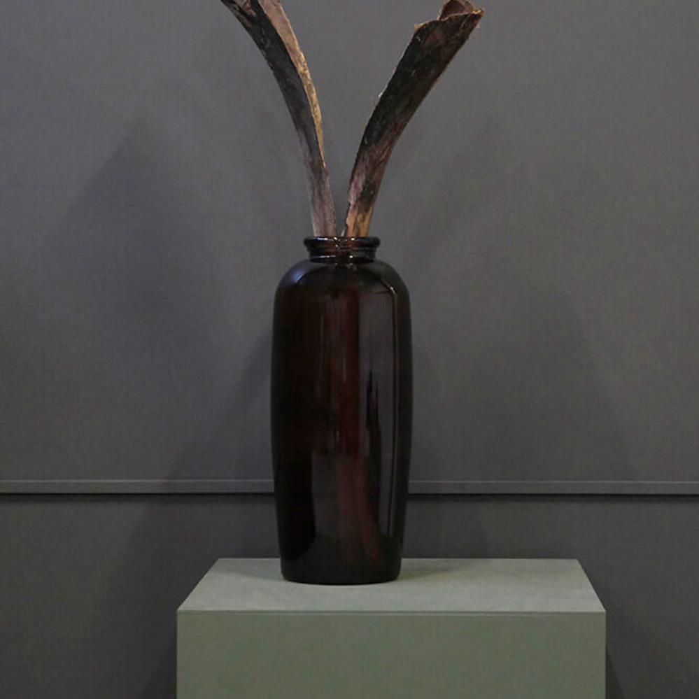 Large decorative vase in a beautiful chocolate colour. With this large glass vase made of recycled glass, you can add a nice eye-catcher to your decor. Decorate the vase with everything beautiful from nature - large branches or flowers. The vase is also a beautiful sculpture as it is. You can both use the vase in the decor of your home, but it is also great to use in your business. Put one or more together in the foyer of a theater, hotel or cinema. It will be a great first encounter when people enter your universe. If you decorate with the branches of the season, it will also be beautiful to decorate the branches with the holiday decorations of Christmas and Easter. These are just a few suggestions for the many options available with such a large, beautiful vase in recycled glass.