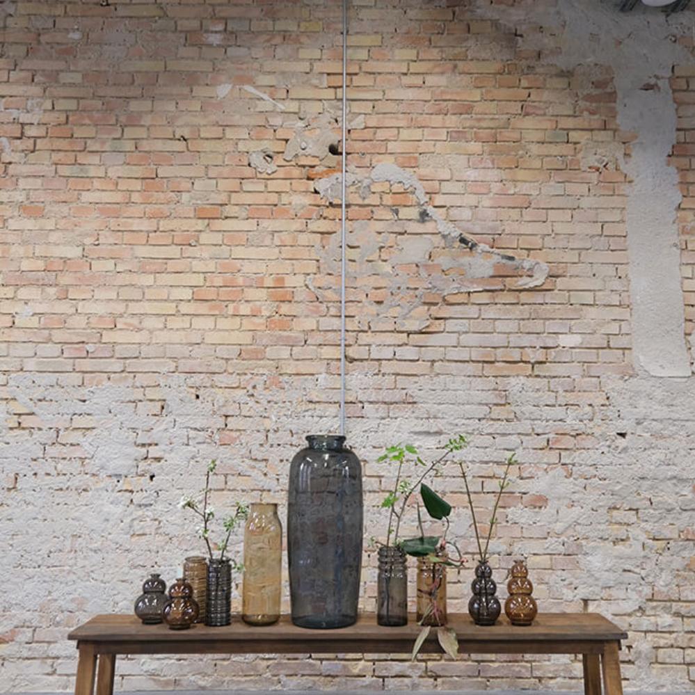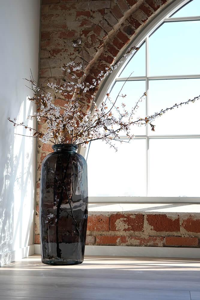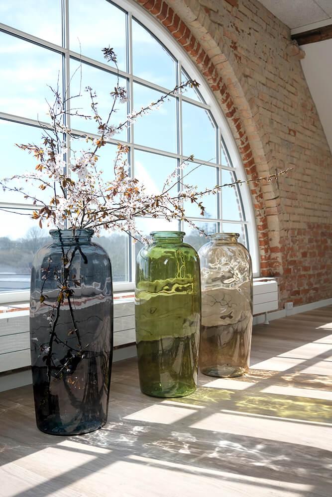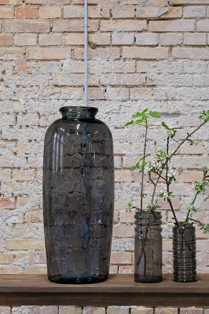 Beautiful floor vase made from recycled glass. The tall, slender shape makes it ideal for seasonal branches or decorative flowers. The vase is available in several colours, allowing you to find the one that perfectly suits your home or business. Small bubbles and irregularities in the glass highlight the vase’s natural and unique expression, as it is made from recycled glass.