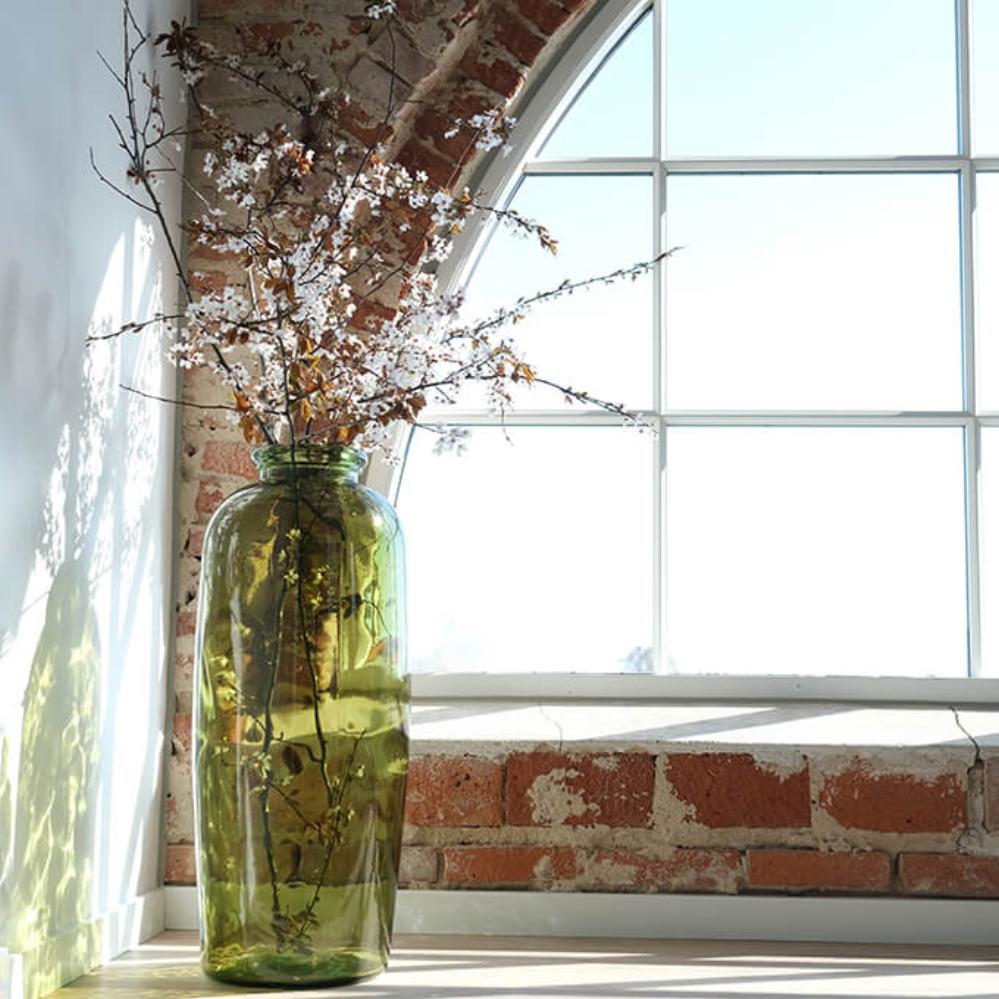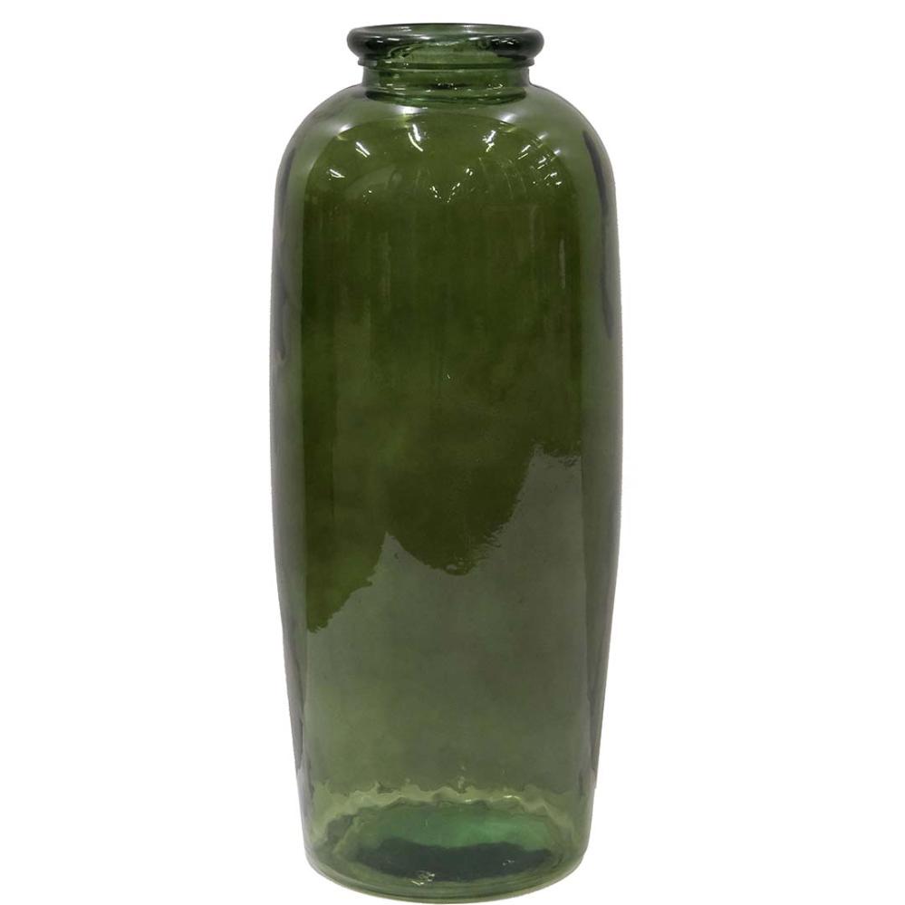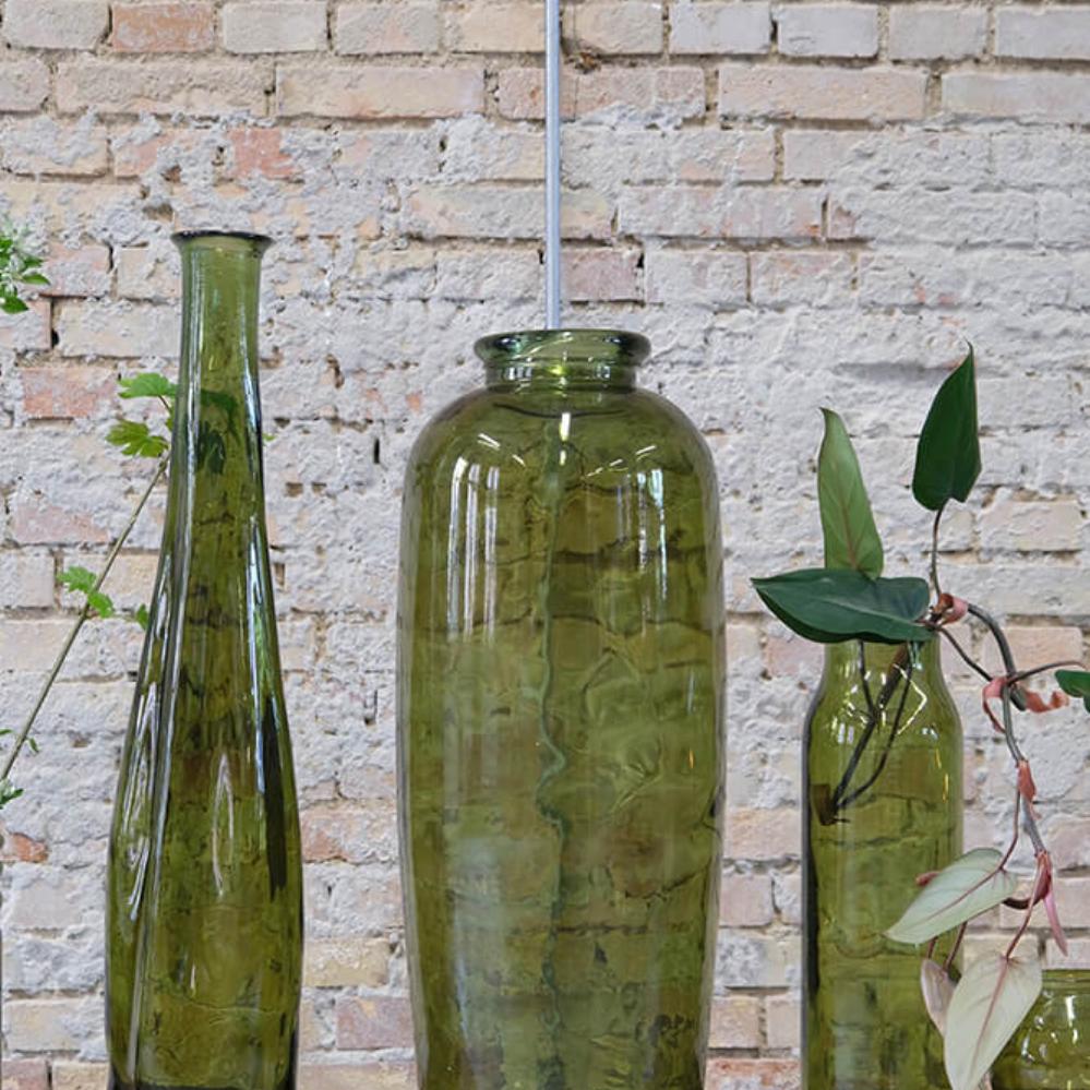 Large decorative vase in a beautiful olive green color. With this large glass vase made of recycled glass, you can add a nice eye-catcher to your decor. Decorate the vase with everything beautiful from nature - large branches or flowers. The vase is also a beautiful sculpture as it is. You can both use the vase in the decor of your home, but it is also great to use in your business. Put one or more together in the foyer of a theater, hotel or cinema. It will be a great first encounter when people enter your universe. If you decorate with the branches of the season, it will also be beautiful to decorate the branches with the holiday decorations of Christmas and Easter. These are just a few suggestions for the many options available with such a large, beautiful vase in recycled glass.