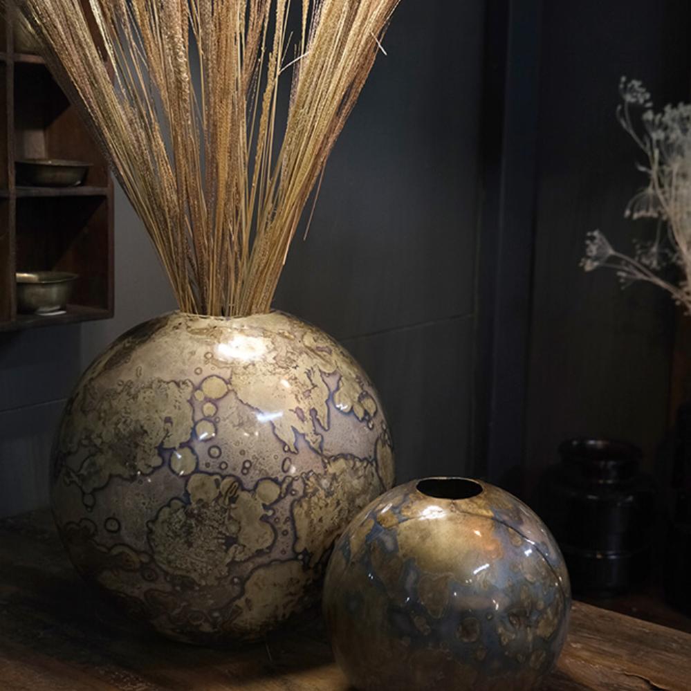 BOSTON - round vase made of metal. The vase has a distinctive color tone, which gives the vase a really beautiful effect and exclusive look. NB! The vase cannot hold water, it's only for decoration.