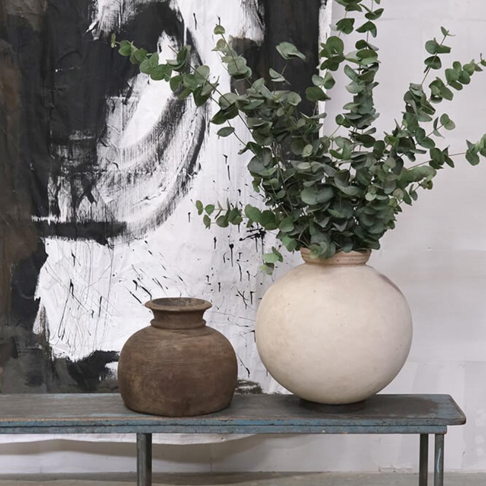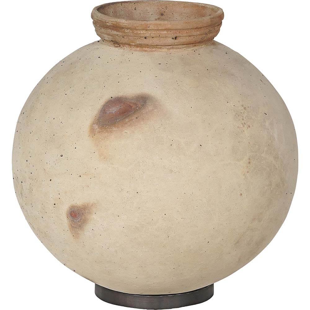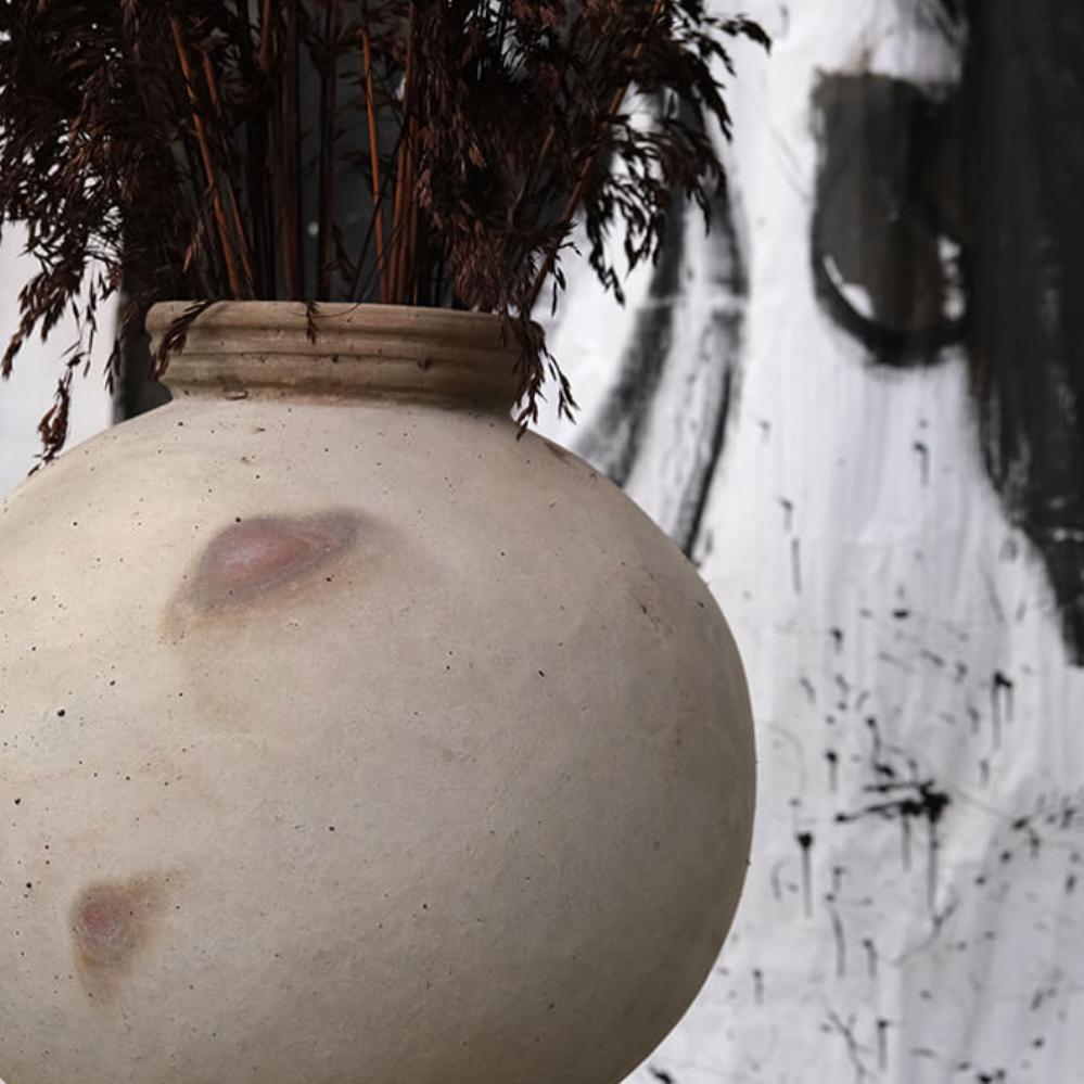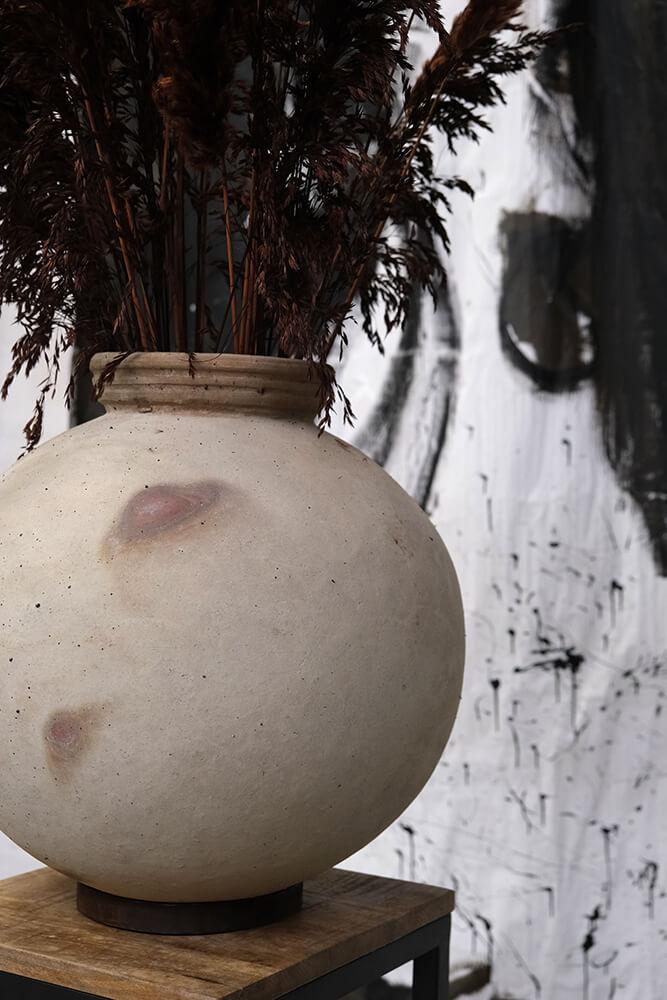 This is the largest Dali clay pot with a height of 44 cm. The rough, light surface and simple shape give it an organic look, while the iron ring at the base ensures stability. Use it as a decorative element, for example with dried flowers. The pot is available in two smaller sizes – and remember, it is not waterproof.