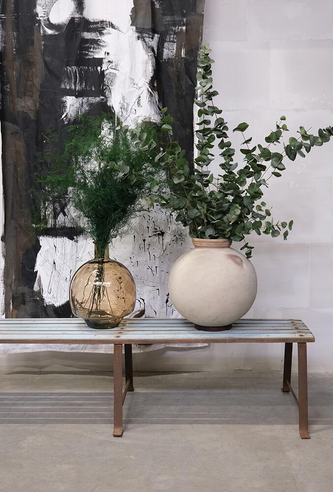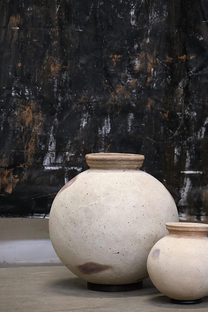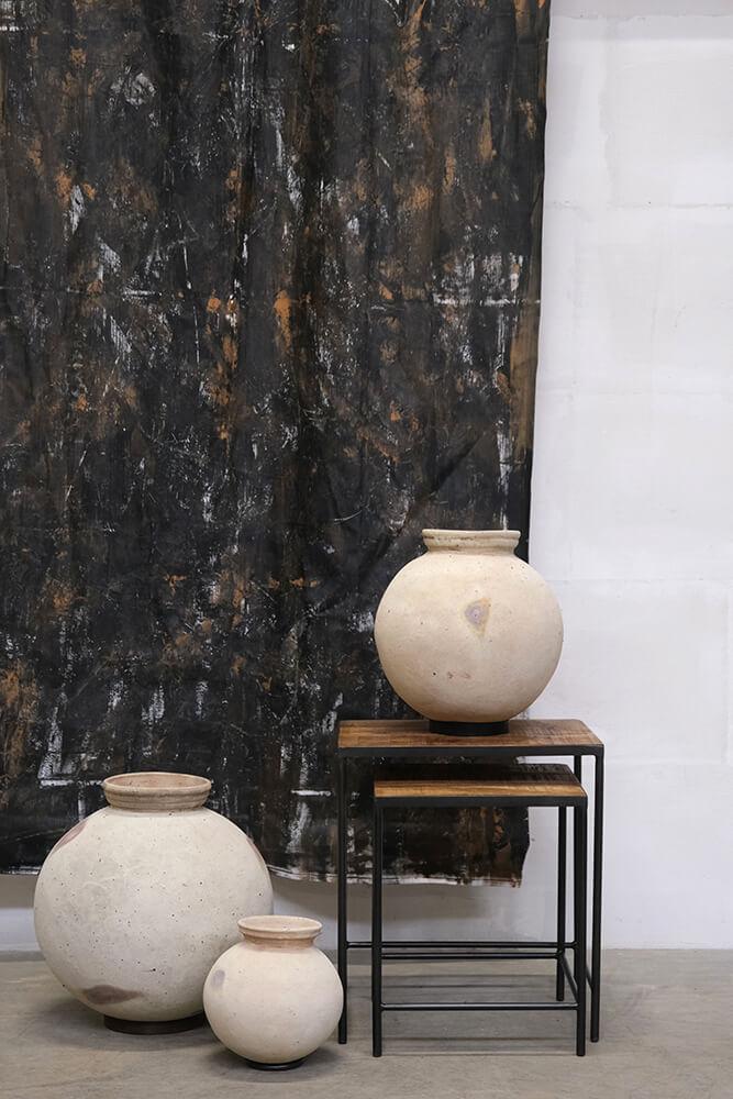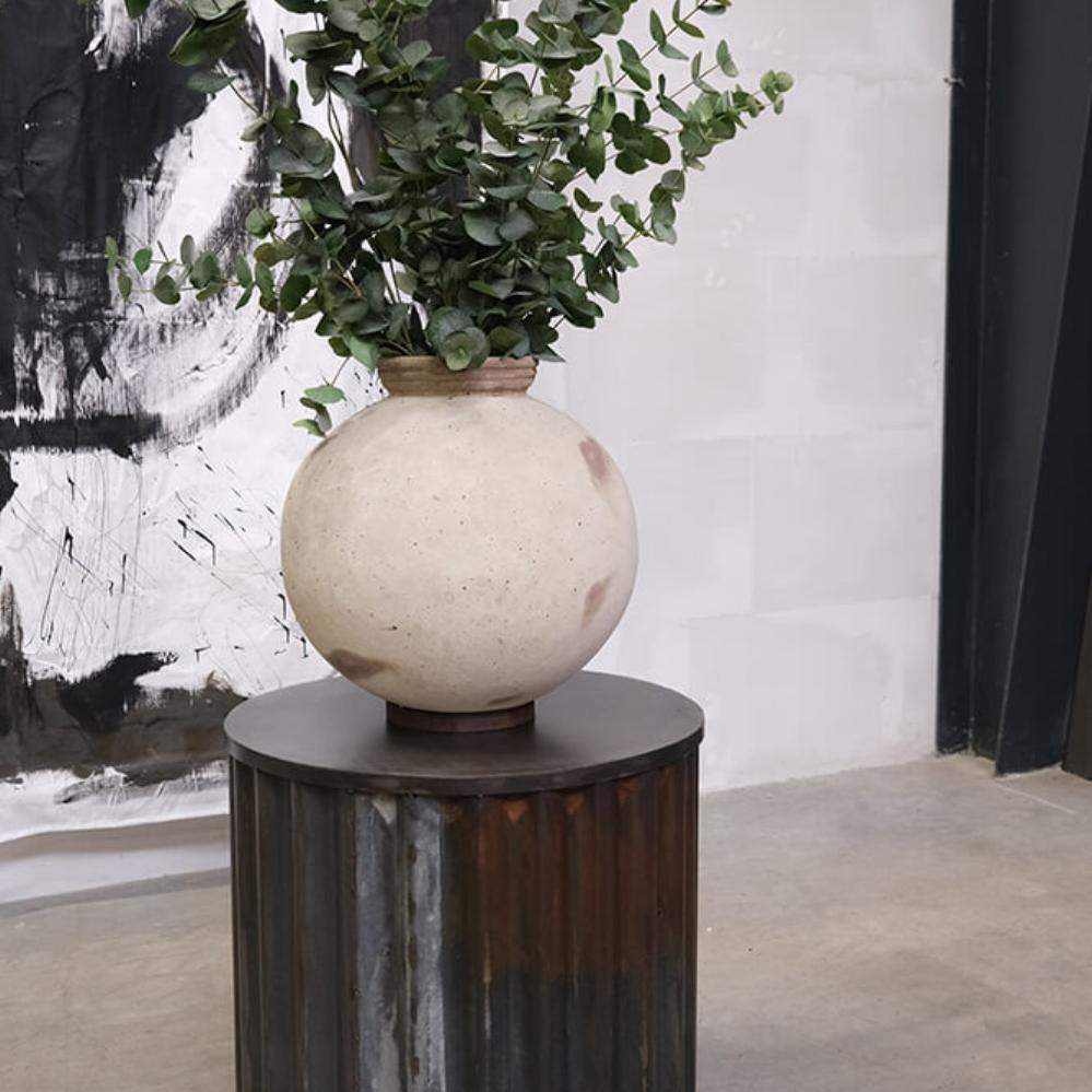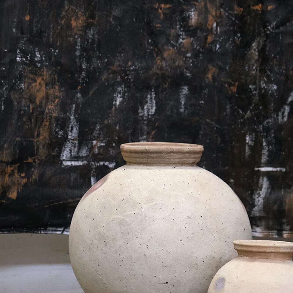 This is the largest Dali clay pot with a height of 44 cm. The rough, light surface and simple shape give it an organic look, while the iron ring at the base ensures stability. Use it as a decorative element, for example with dried flowers. The pot is available in two smaller sizes – and remember, it is not waterproof.