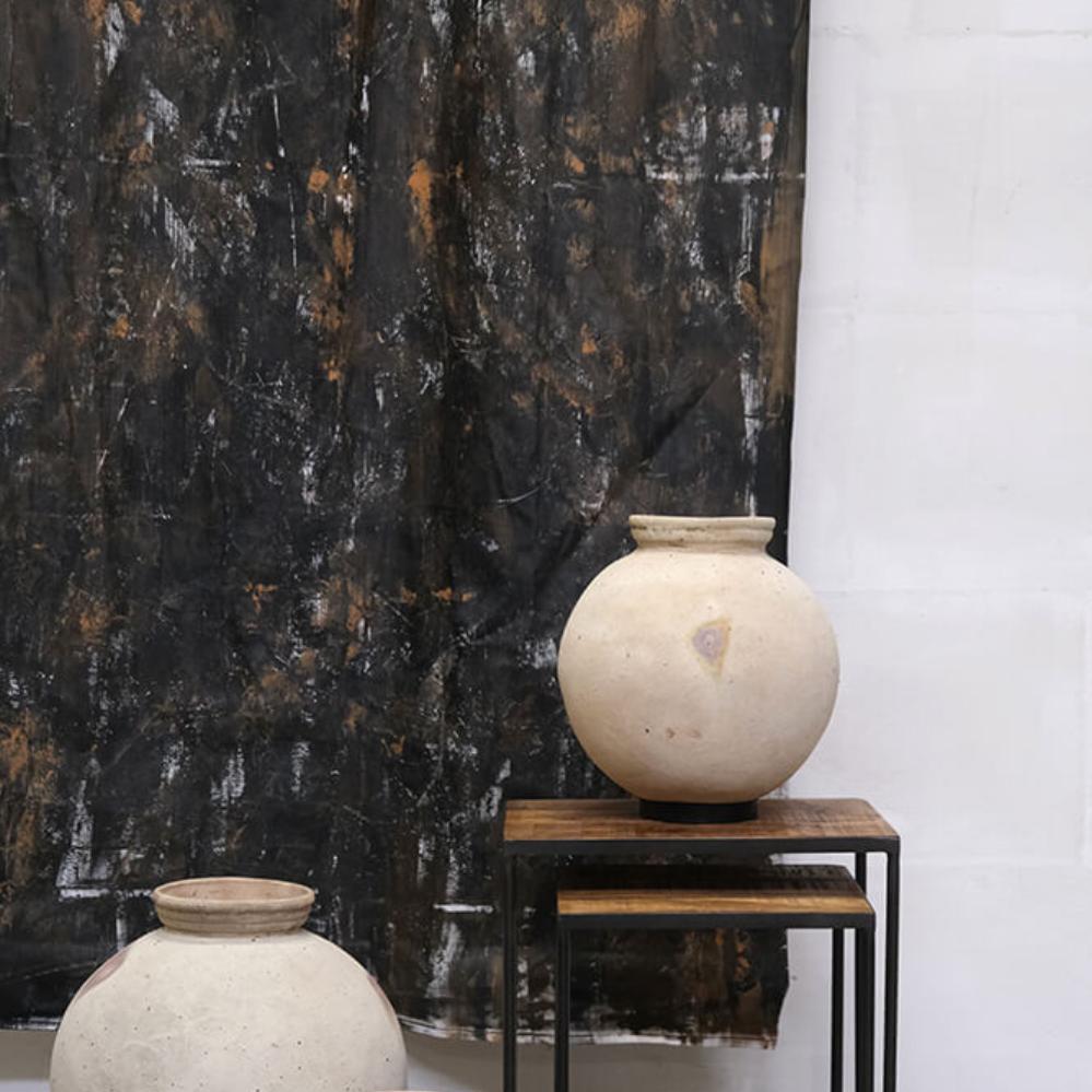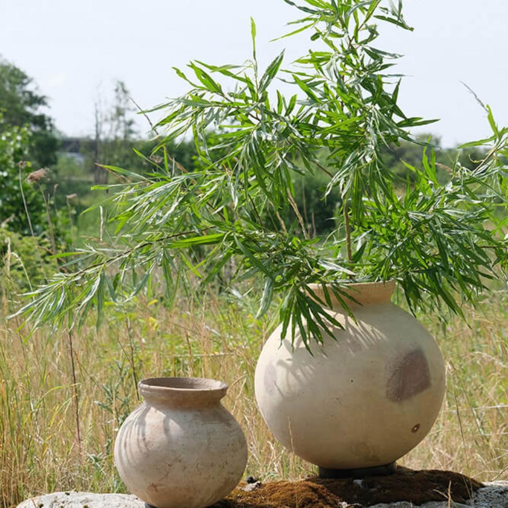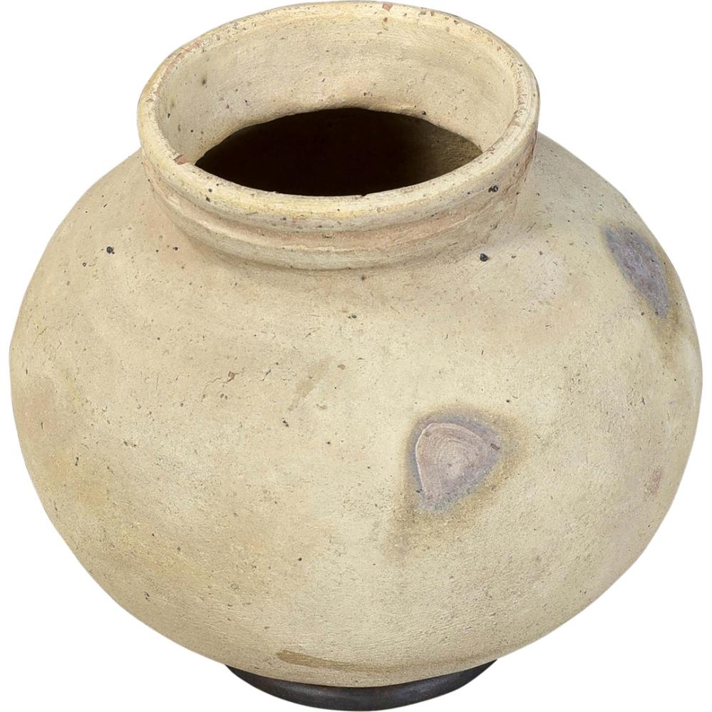Nice light clay pot with an iron ring. This beautiful claypot is used today to store drinking water. However, this does not mean that the pot is waterproof. A little bit of water keeps coming out of the pot, and this way the water stays fresh and never stands still. The pot is not frost-proof, but it can be used for plants with a glass / plastic insert. With this pot you get something nice and used that has a good story and more stories are waiting. NB! The pot is available in 3 sizes.