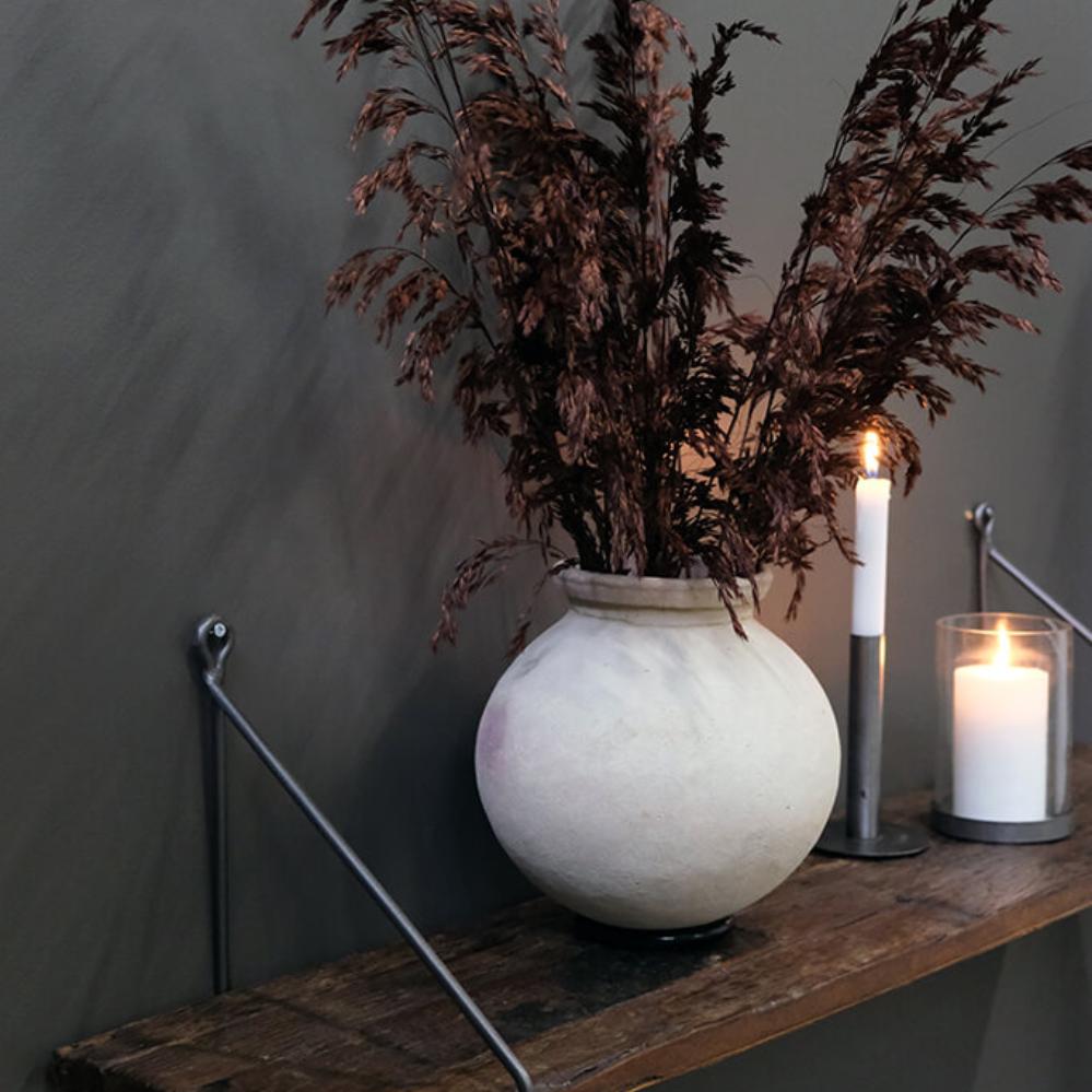 With its simple shape and warm, natural tone, the Dali clay pot brings a touch of Mediterranean atmosphere into your interior. It stands on an iron ring, creating a beautiful contrast to the raw clay. Combine several sizes for a harmonious and lively expression. The pot is not waterproof.