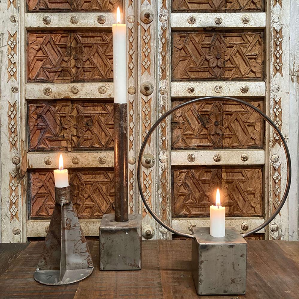 This circular raw candlestick is a fine choice for industrial modern or minimalist decor. The candle holder can be set where you want clean lines on tables, window frames and shelves or hang it from a hook in the ceiling. Use short candle lights.