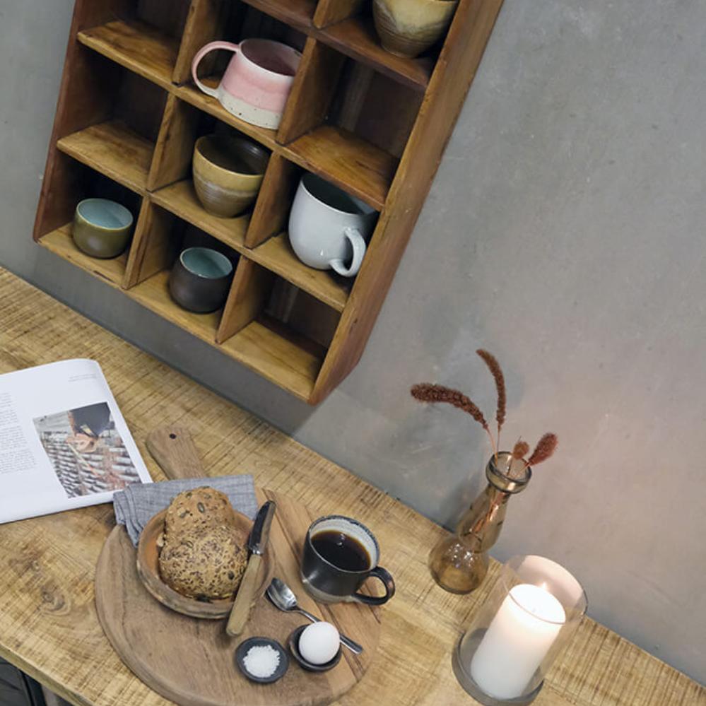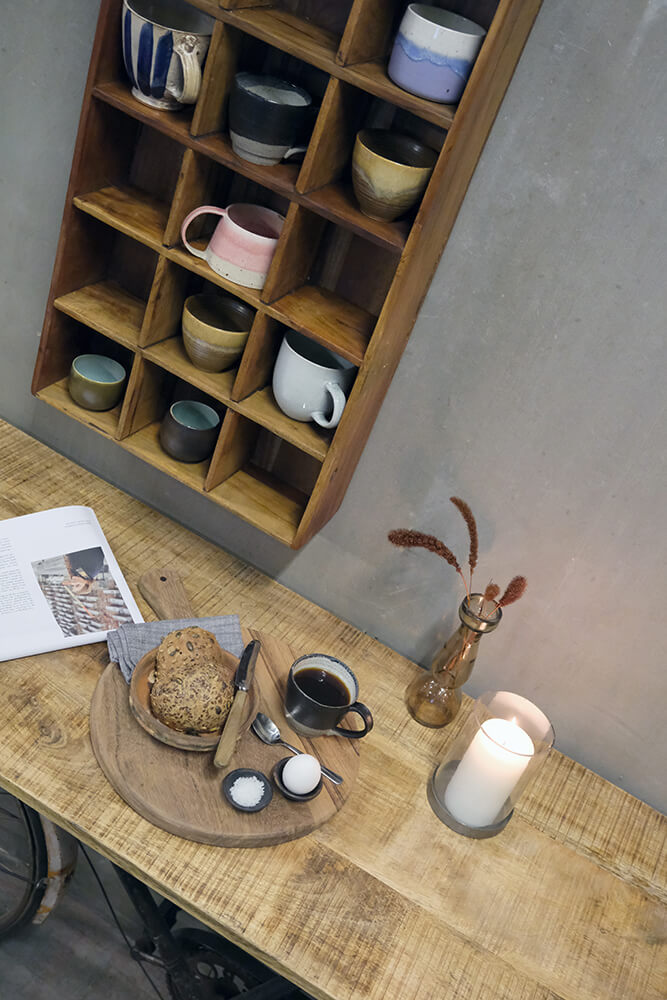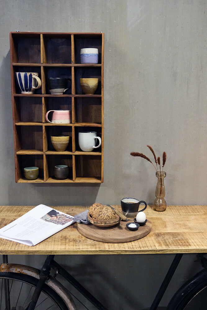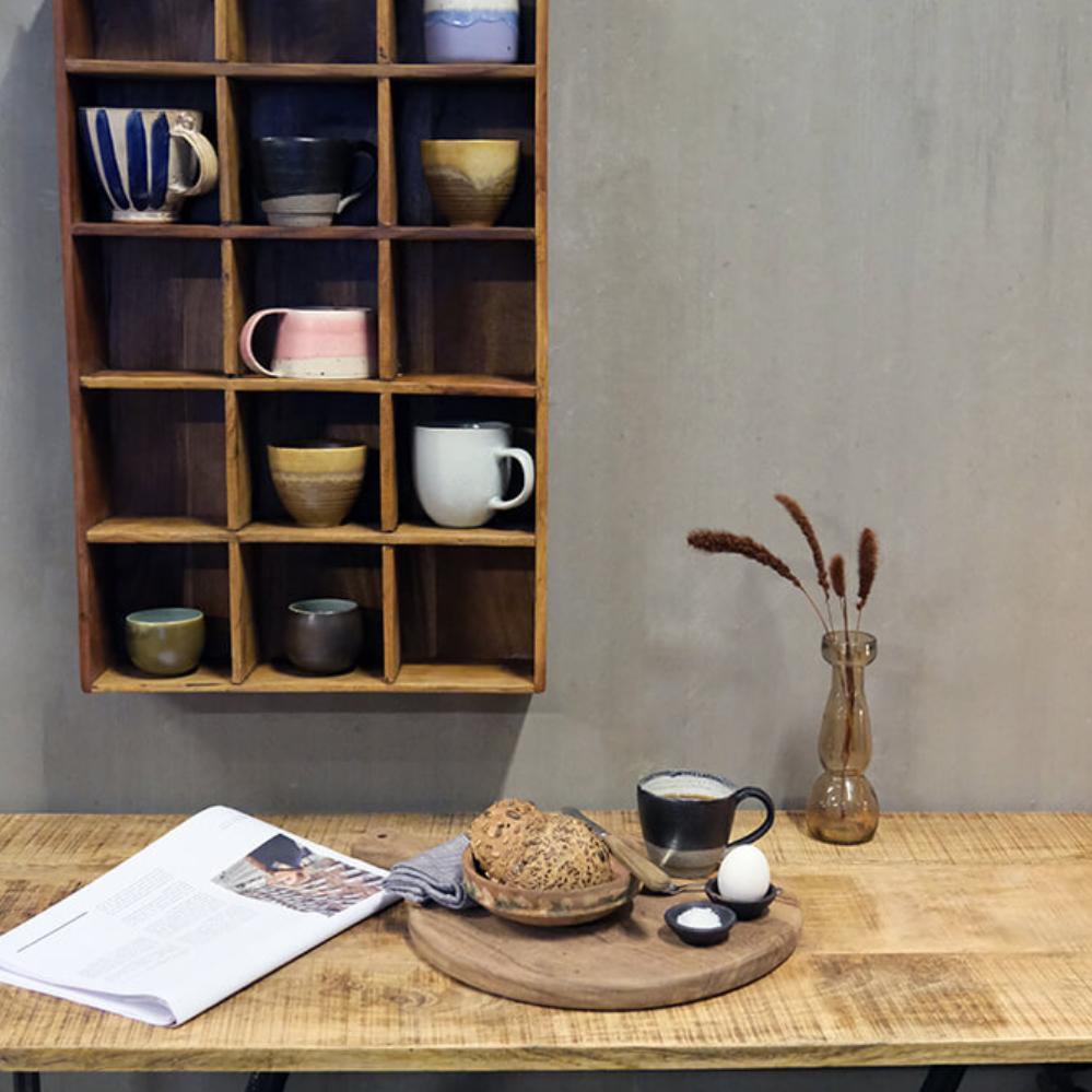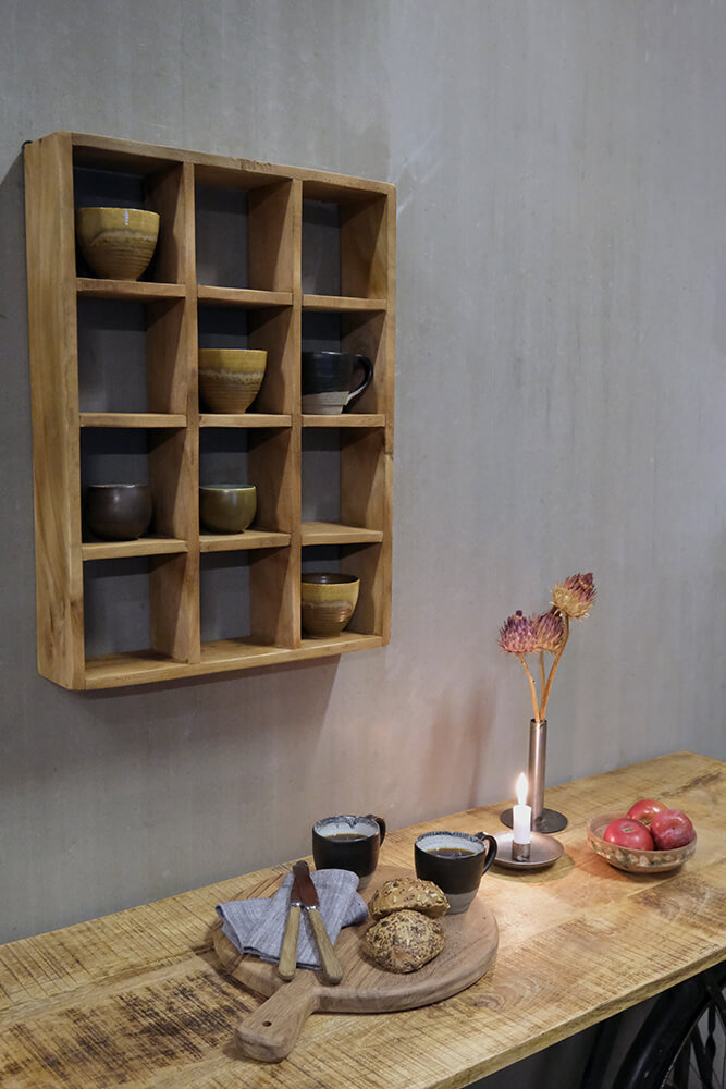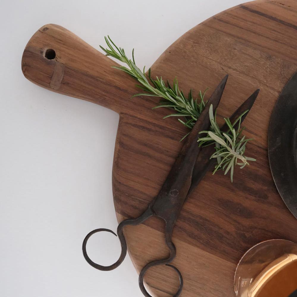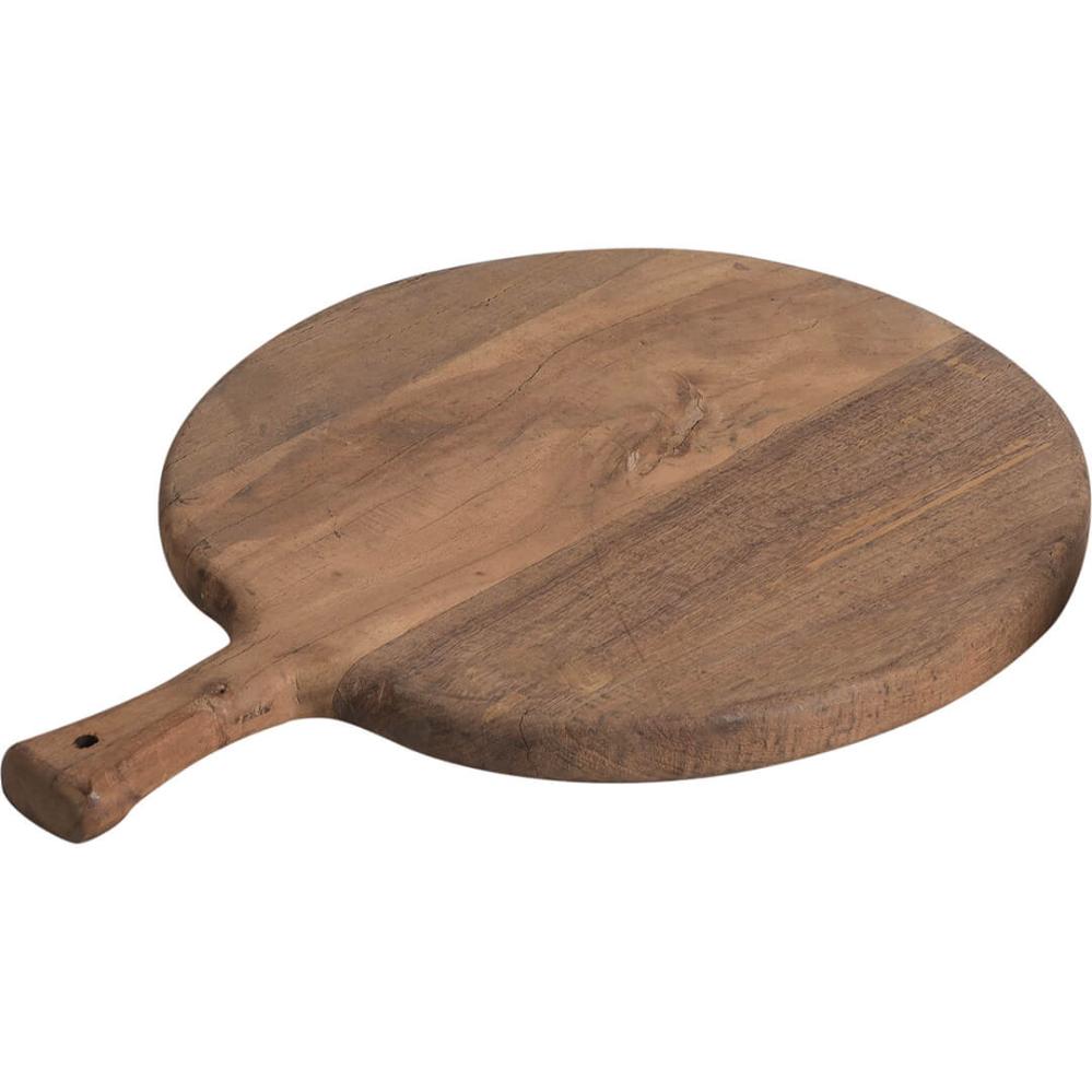 A large, round cutting and serving board made of solid wood with a rustic and natural look. The board has a sturdy quality and a beautiful surface that highlights the wood’s natural grain and color variations. The round design makes it ideal for serving pizza, tapas, bread, or fruit – or simply as a decorative element on the kitchen counter. The handle provides a good grip, and the hole allows you to hang it when not in use. To maintain the beautiful finish, treat the board with a bit of cooking oil regularly. Not suitable for the dishwasher. This tapas board is also available in a larger version. Please compare M16685.