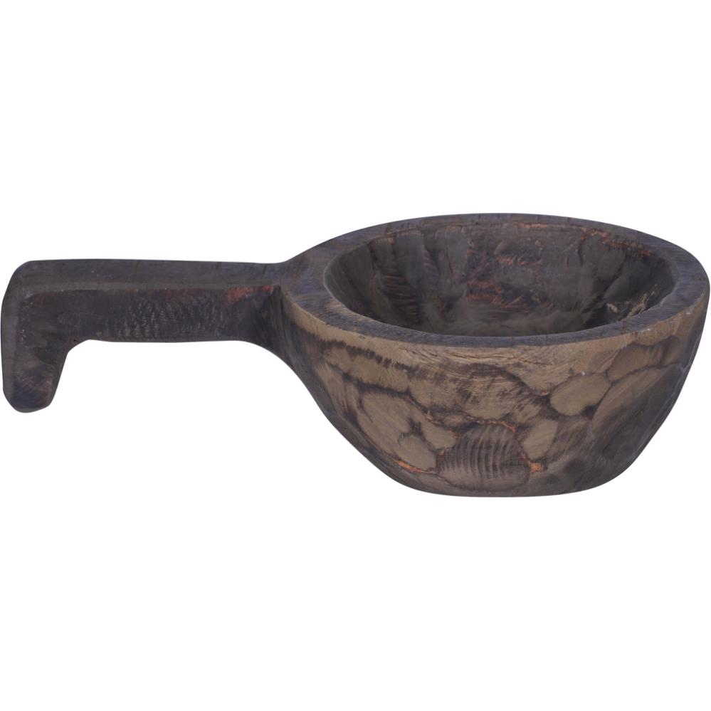 This small wooden bowl with a handle is both cute and decorative. It can be used for various purposes, whether as a serving bowl, a decorative element, or for organizing small items. This lovely and versatile bowl adds a rustic style to any decor.