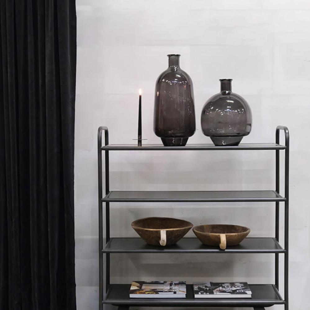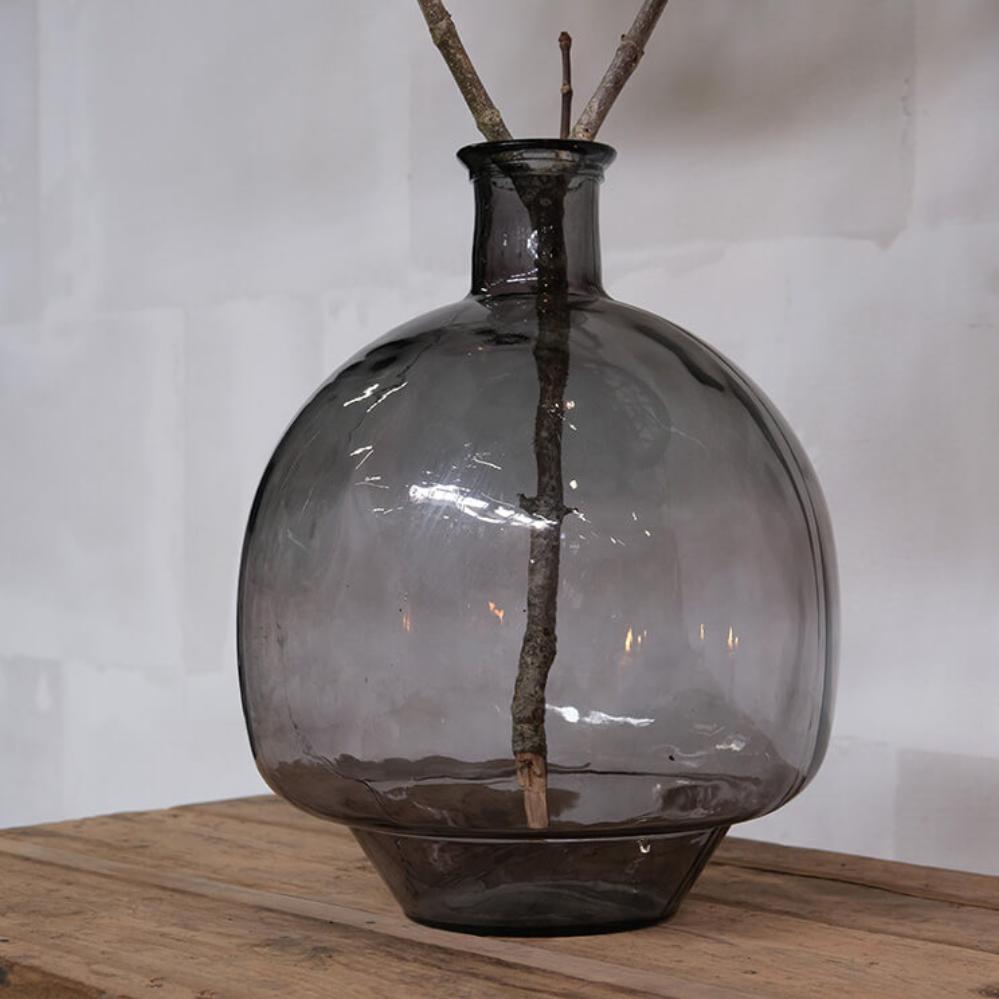 The Joy vase in grey is a beautiful glass vase with a nice organic shape. The vase is 40 cm high and is therefore ideal as a floor vase. You can put it alone or together with other vases as a nice spectacular display. The glass vase can be decorated with the beautiful branches of the season. The vase is made of recycled glass, and therefore small bubbles and minor irregularities may occur in the glass.